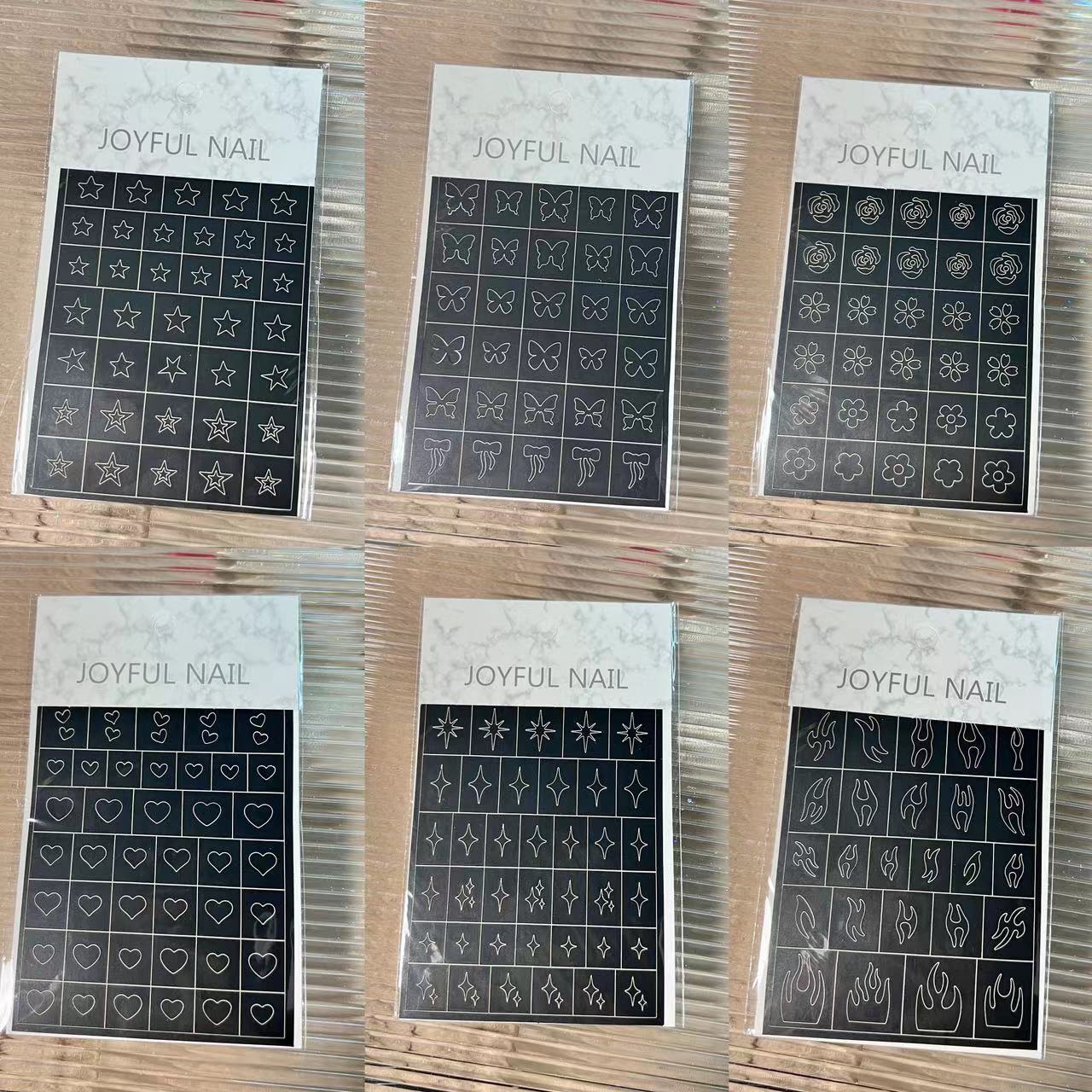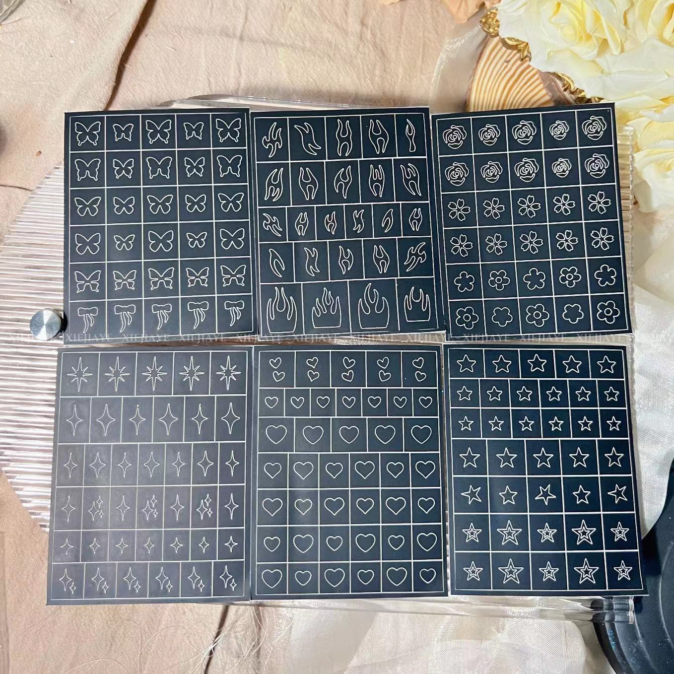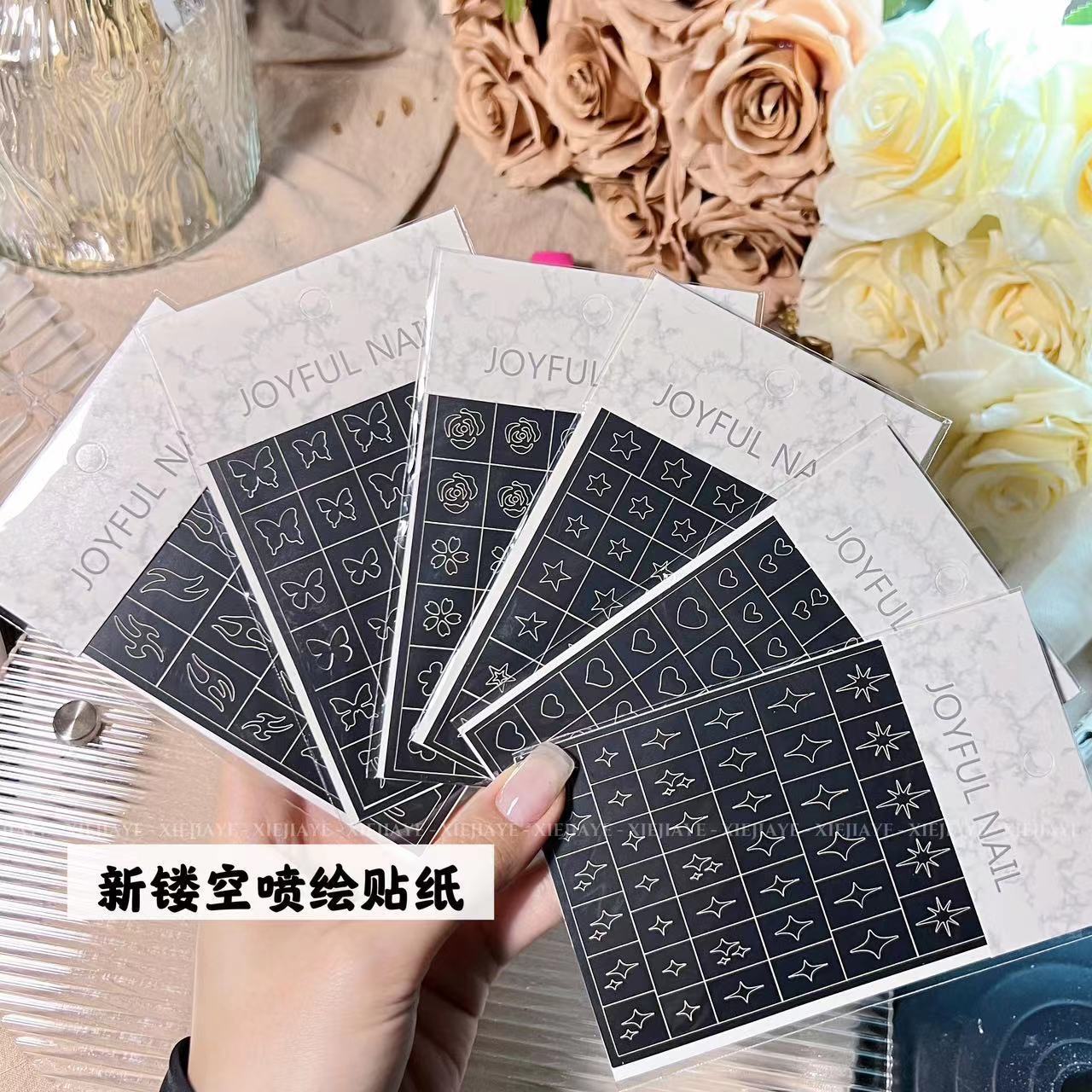 Manicura Xiaoying-Nuevos stickers huecos para uñas pintados con aerosol 6 piezas de stickers de Amor estrella Flor red mariposa