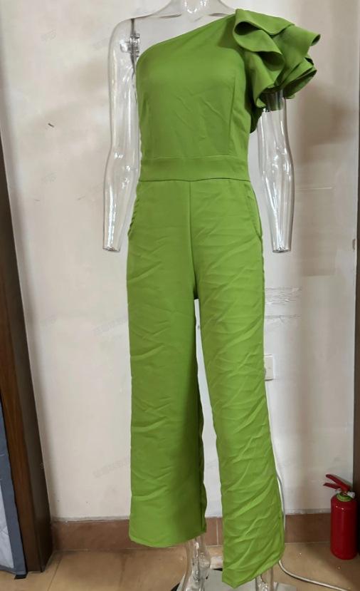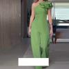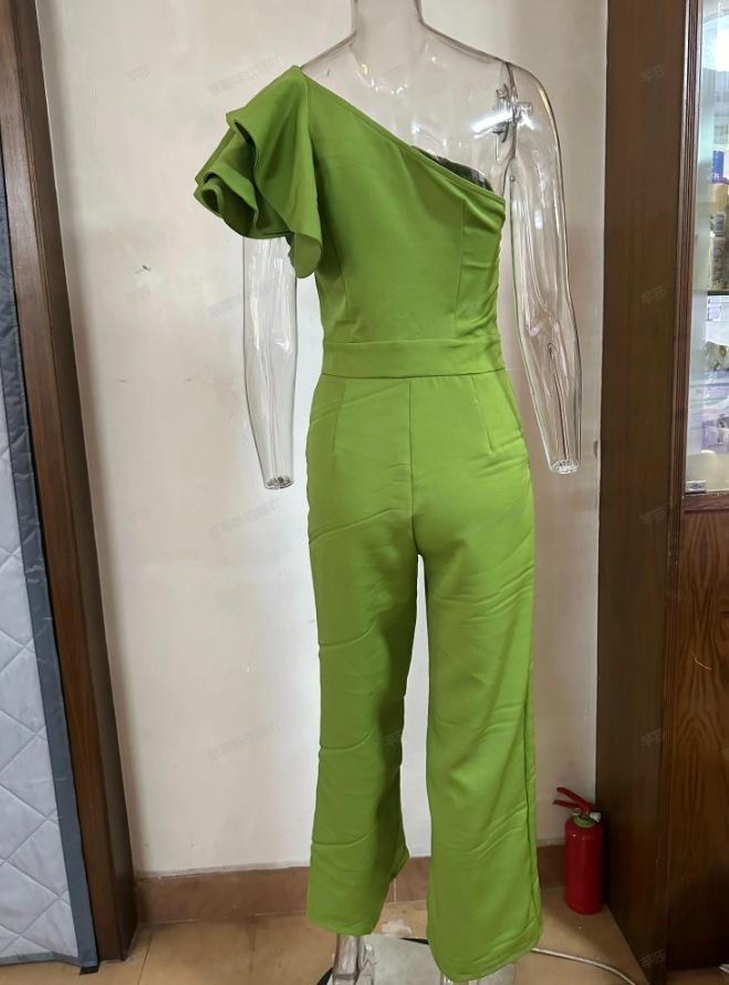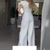 2024 Comercio Exterior Transfronterizo Europa y América Amazon Verano Nueva Moda Hombro Descubierto Cuello Cinturón Cintura Color Sólido Mono de Pierna Ancha para Mujer