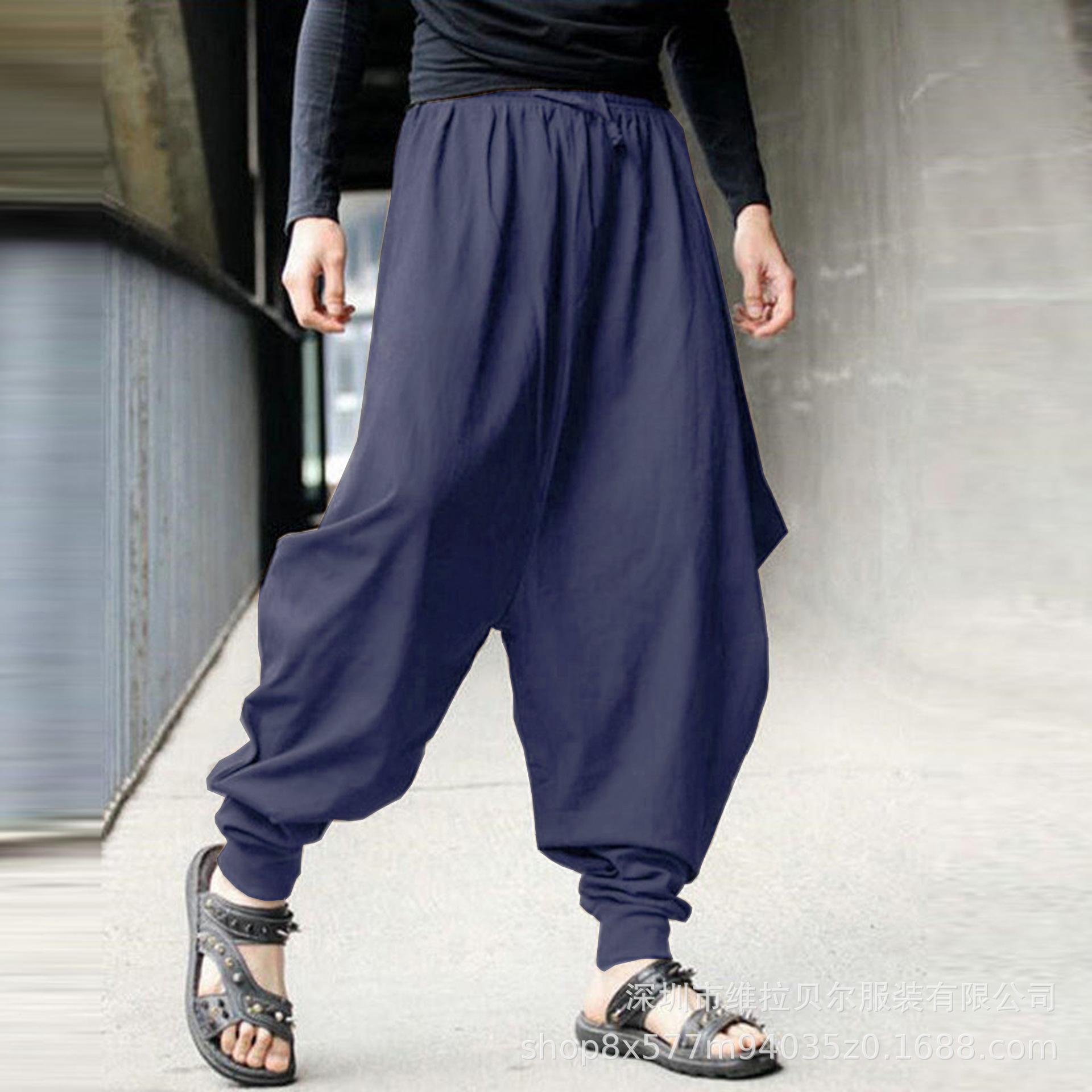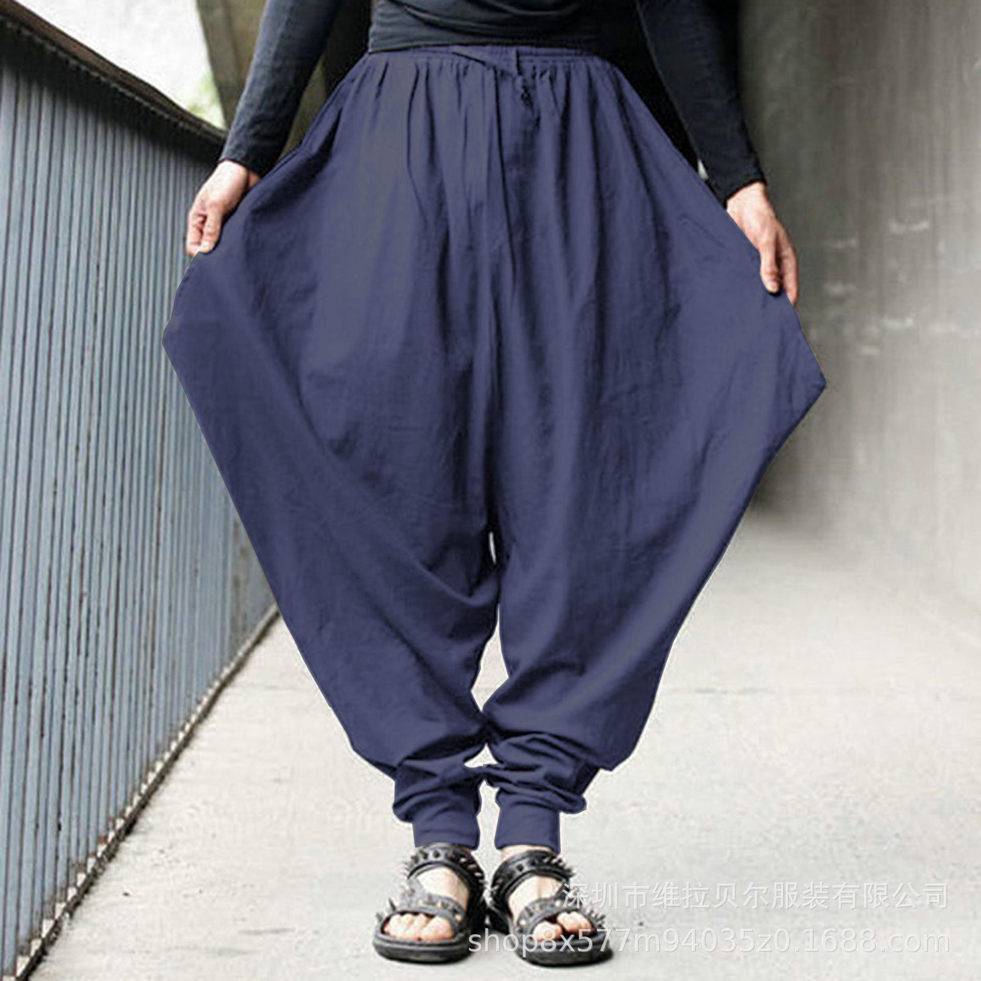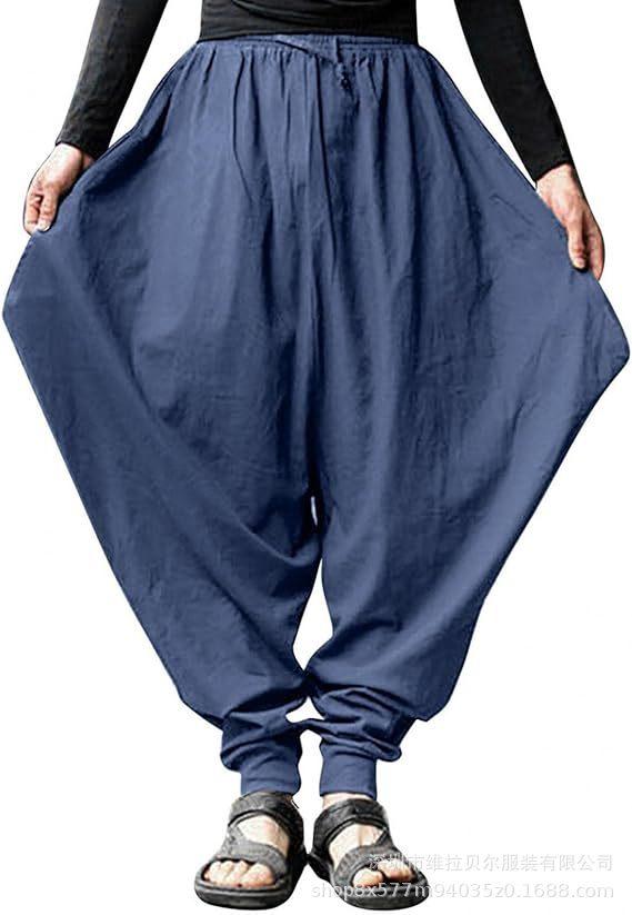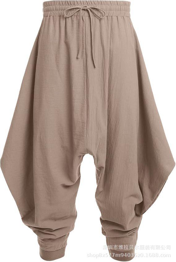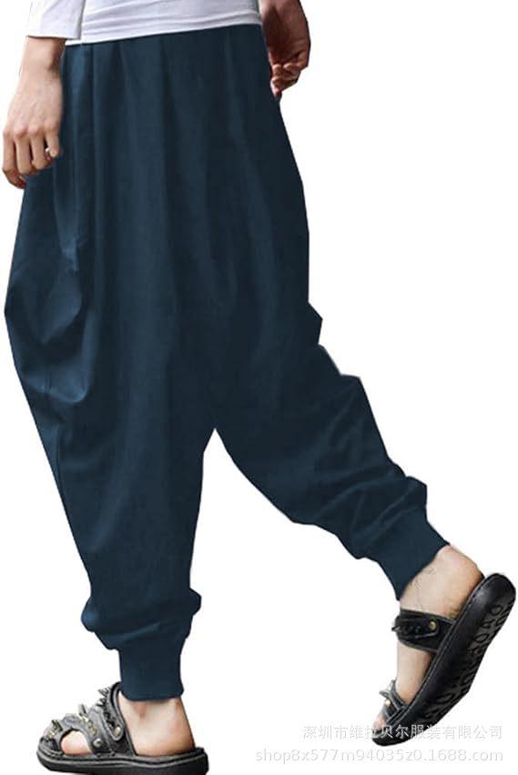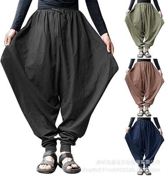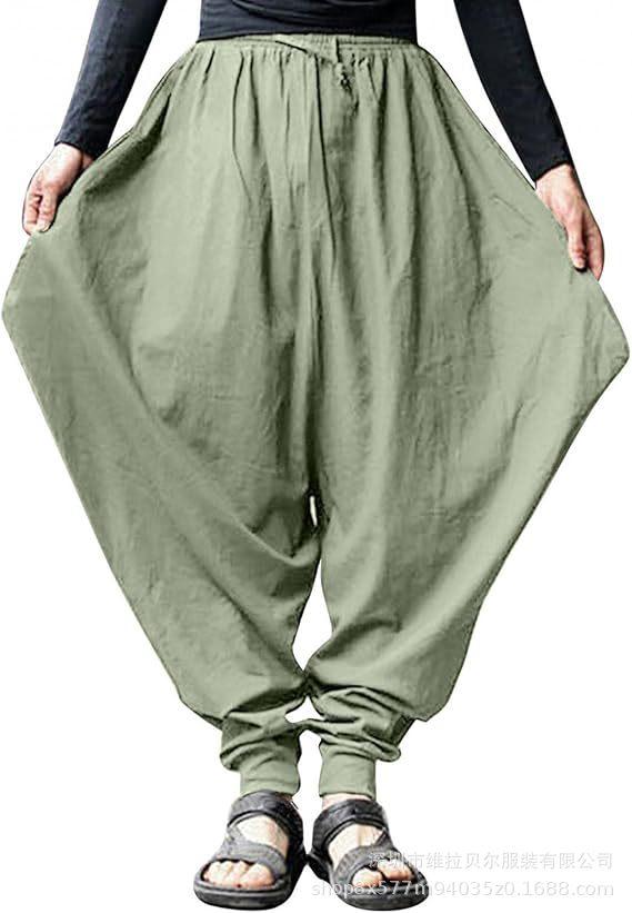 | Pantalones de algodón y lino de nueve puntos con cintura elástica, pantalones casuales con bolsillo, para mujer, envío el mismo día, estación independiente de Amazon |