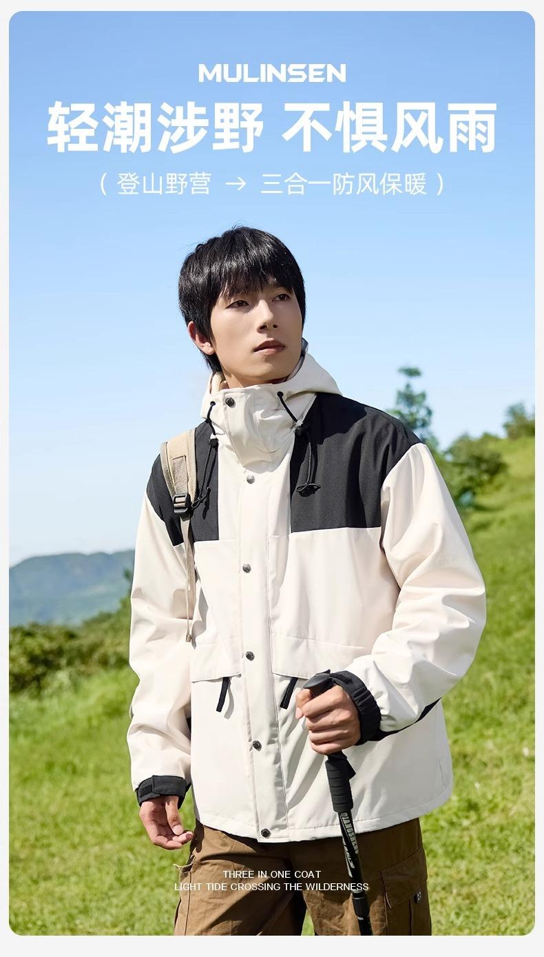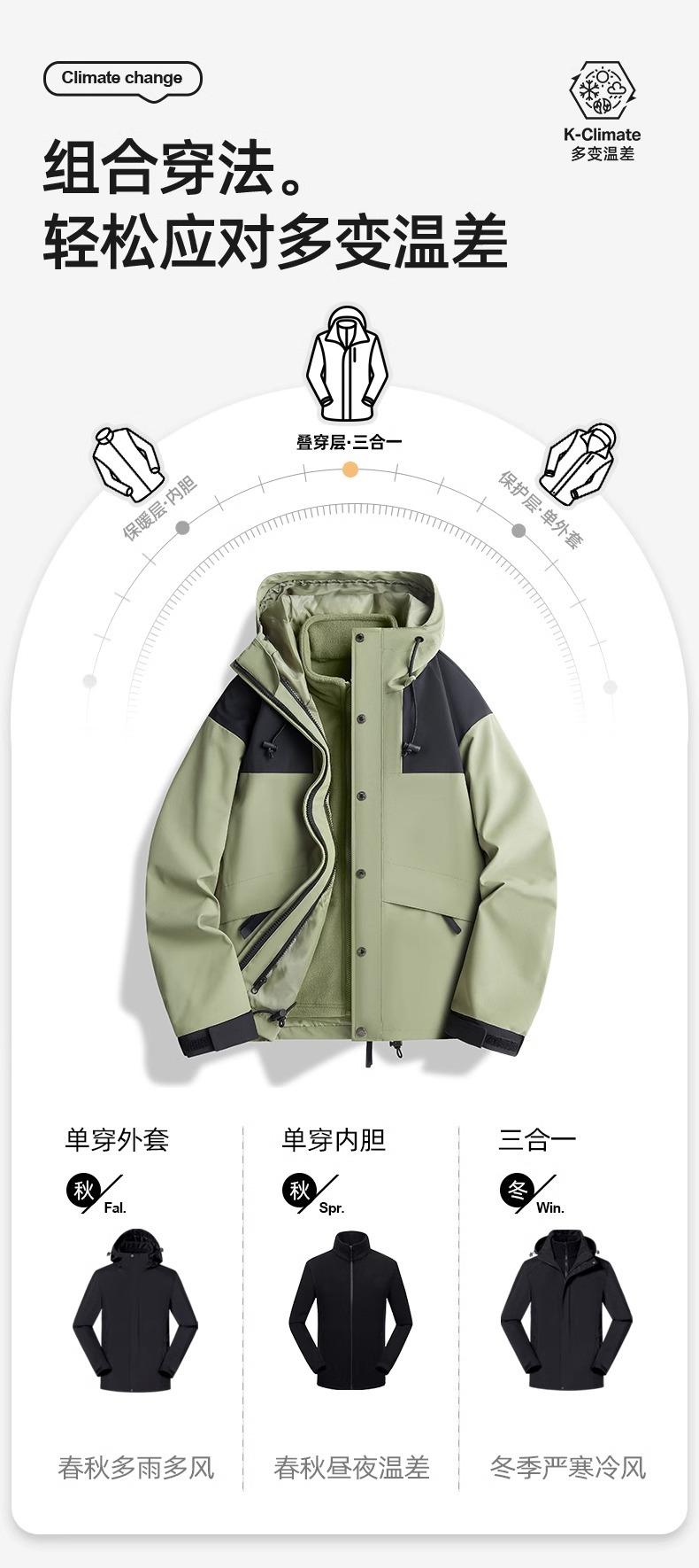 Chaqueta de exterior para hombre y mujer, traje de montañismo de montaña desmontable tres en uno, impermeable, resistente al viento, cálido, para viajes, 2024