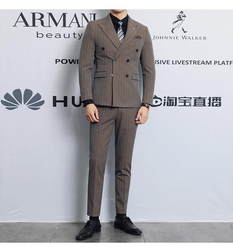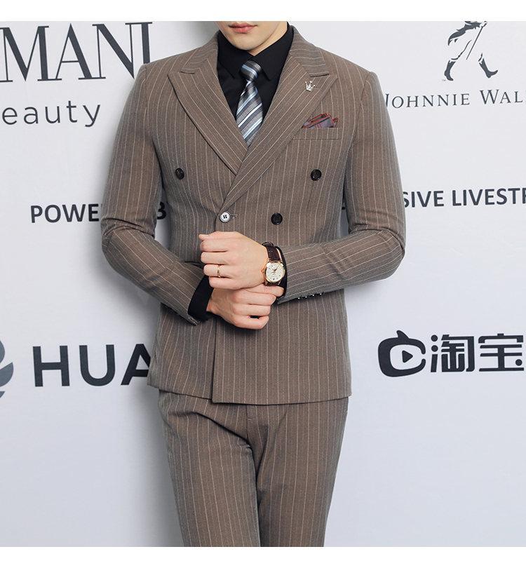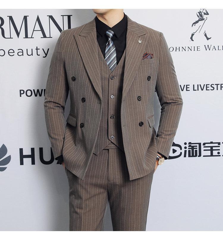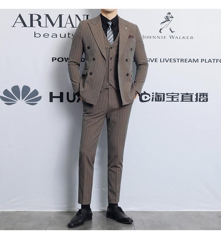 Traje Casual Nuevo para Hombre 2024 Traje de Tres Piezas Coreano a Rayas Traje de Vestir para Novio Anfitrión MC Hombres