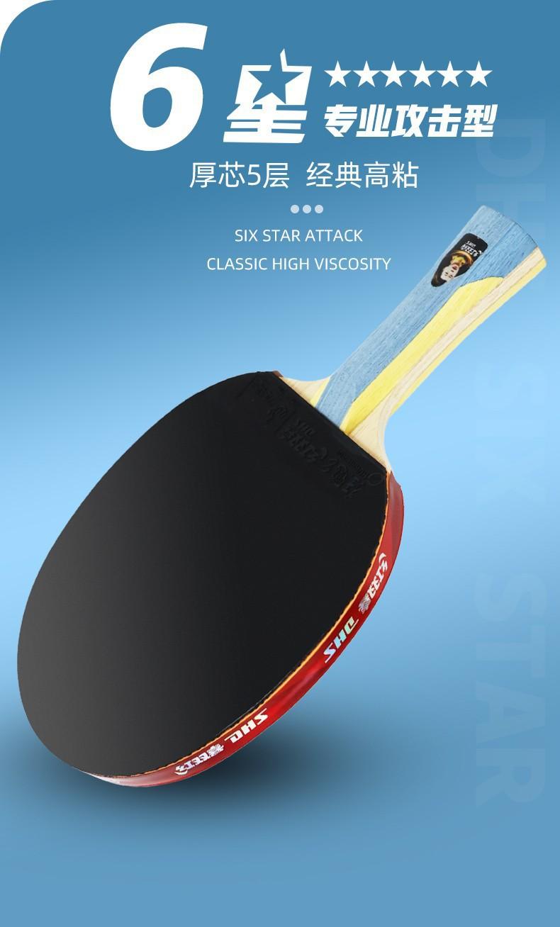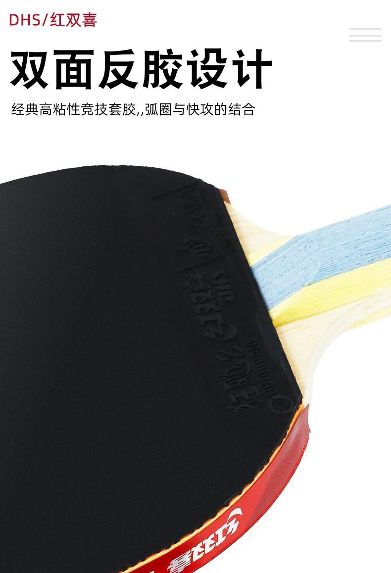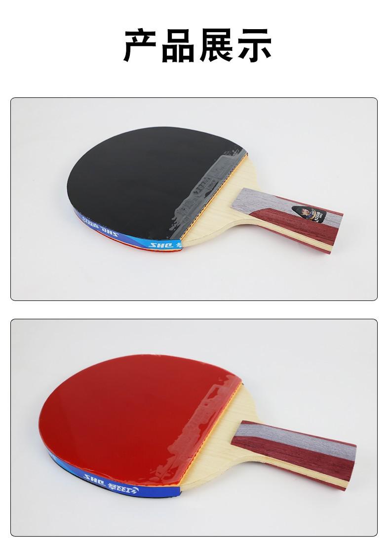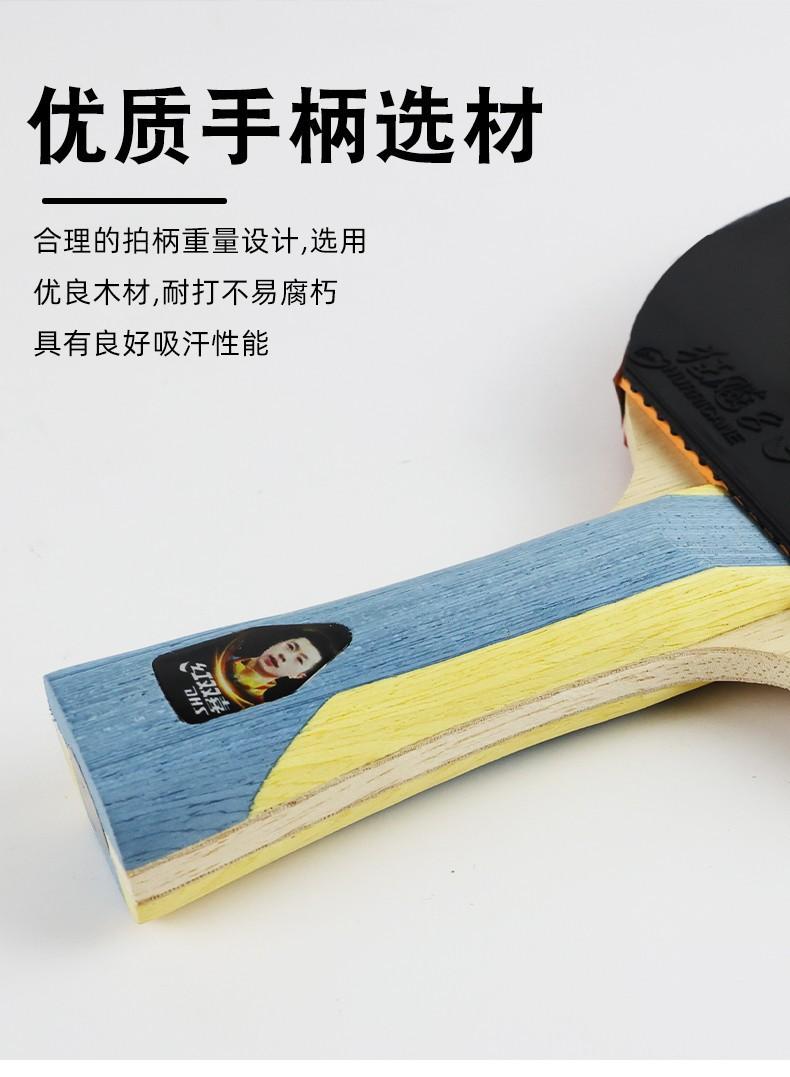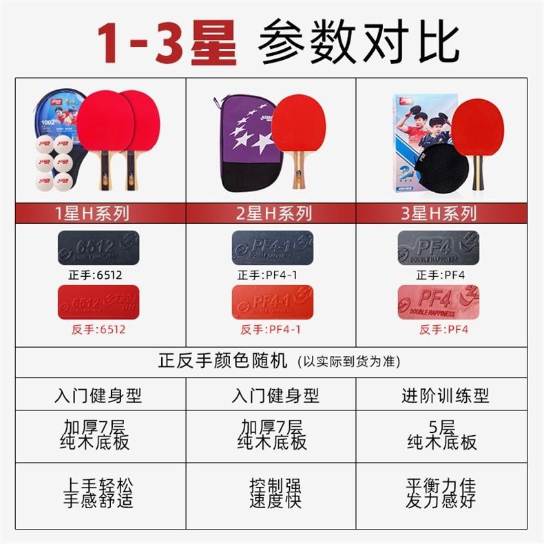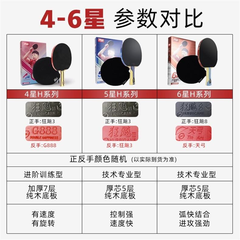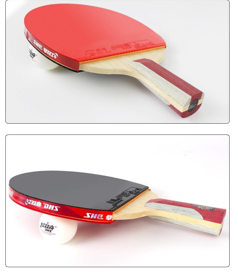 Raqueta de tenis de mesa Red Double Happiness, serie Star H, con acabado horizontal, recta, mango largo, mango corto y cubierta adhesiva de doble cara.