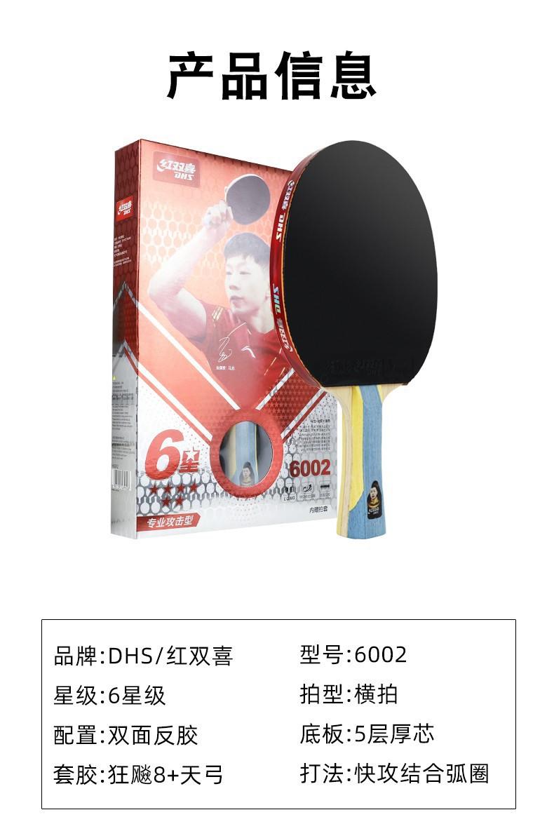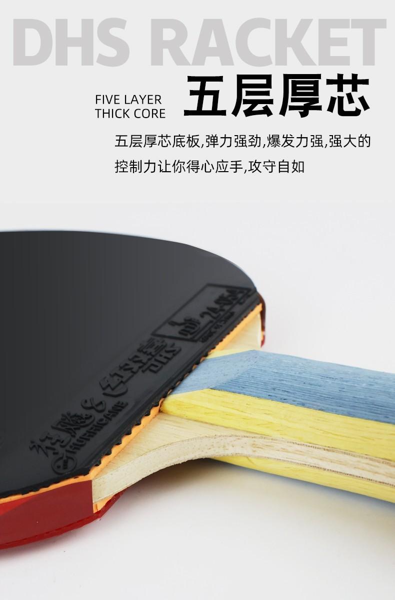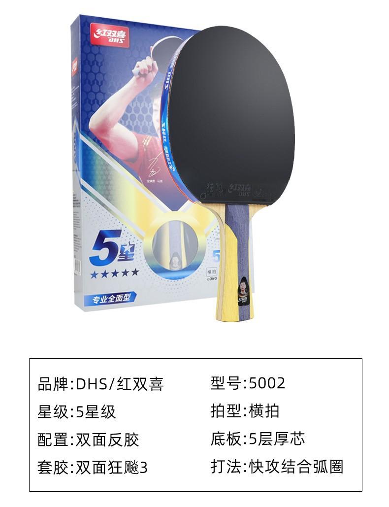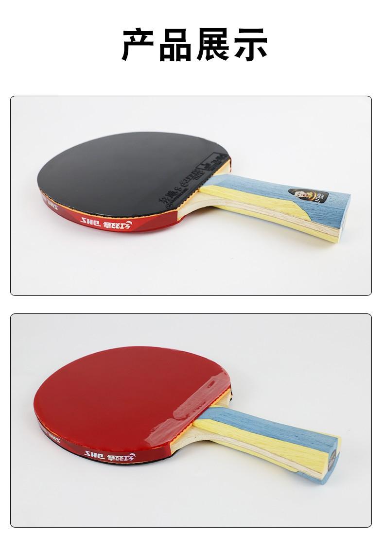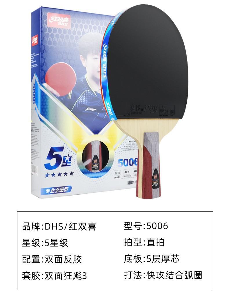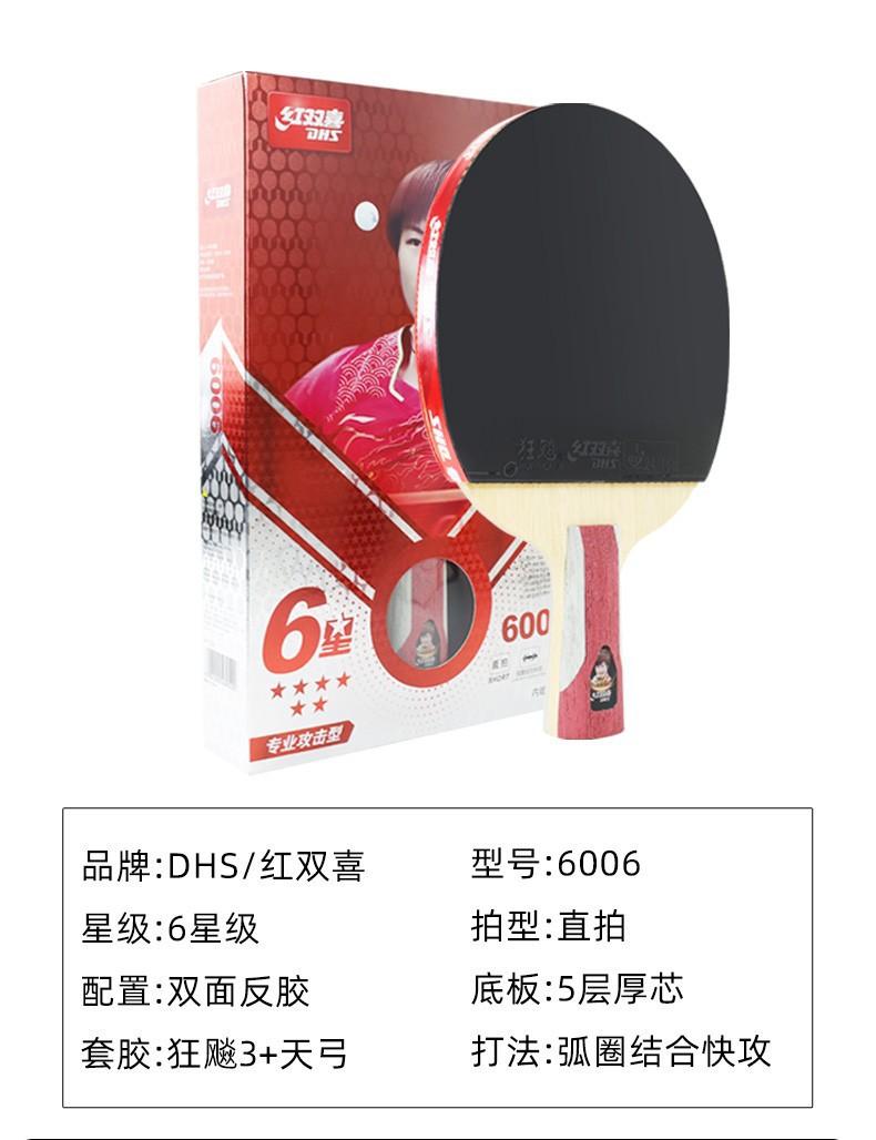 Raqueta de tenis de mesa Red Double Happiness, serie Star H, con acabado horizontal, recta, mango largo, mango corto y cubierta adhesiva de doble cara.