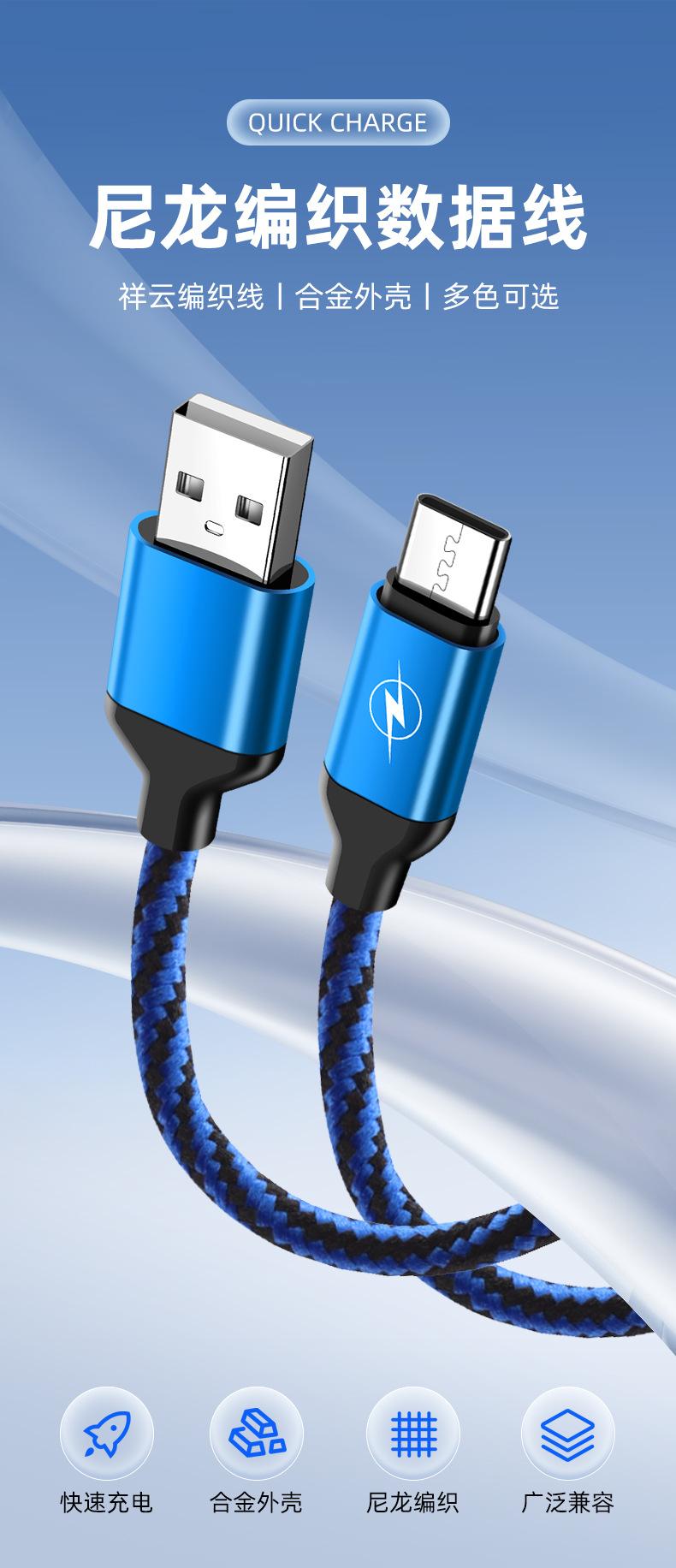 Cable de datos de carga rápida con trenzado de tela, nuevo y al por mayor, para Android, Huawei, tipo C, Apple, cable de carga USB.