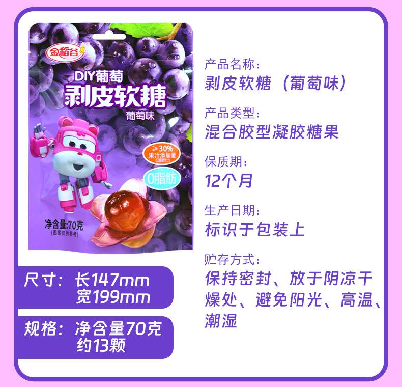 70g Peeling Grape Flavor, 70g peeled green for flavor, 70g peeled white peach flavor