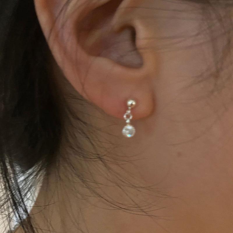 Zircon drop earrings 925 silver needle plated with real gold, Round zircon earrings 925 silver needle plated w...