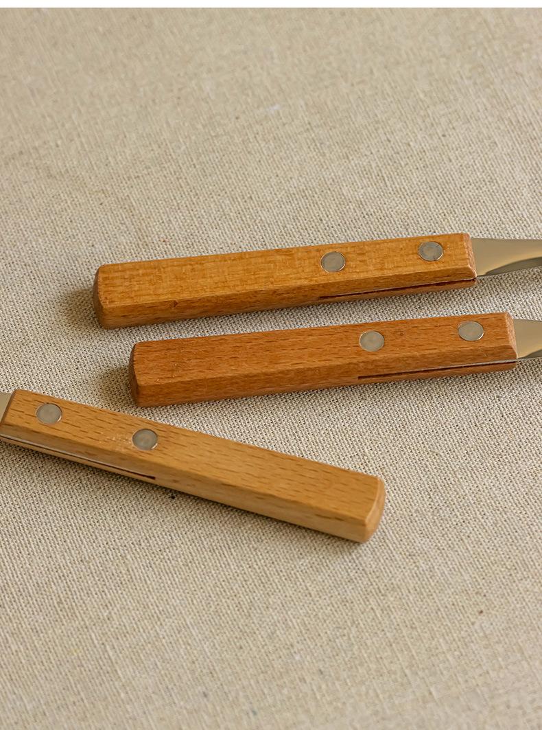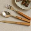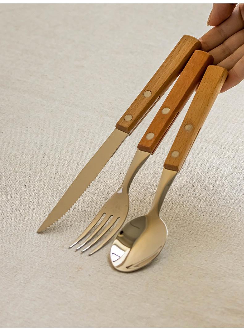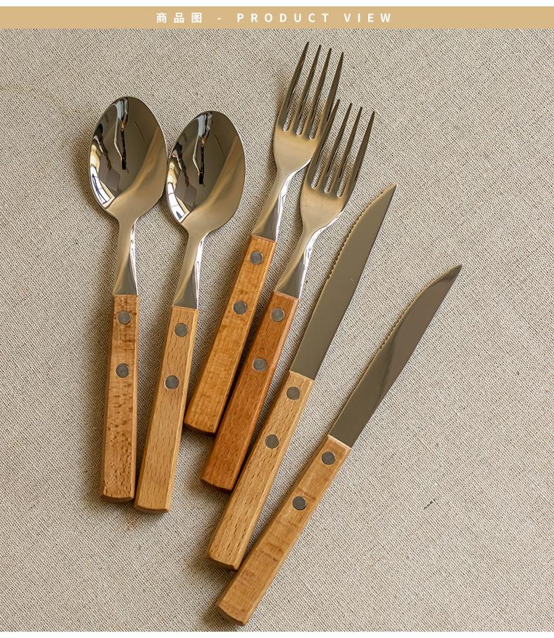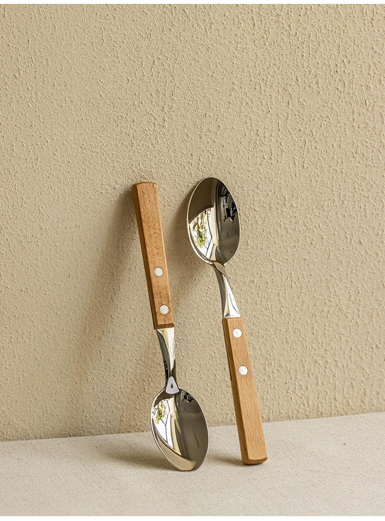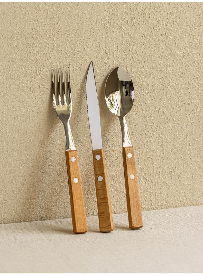 Cubiertos de Acero Inoxidable con Mango de Madera, Juego de Vajilla Estilo Ins, Cuchillo para Carne, Tenedor y Cuchara, Cuchara de Postre Exquisita para Restaurante, Cuchara para el Hogar