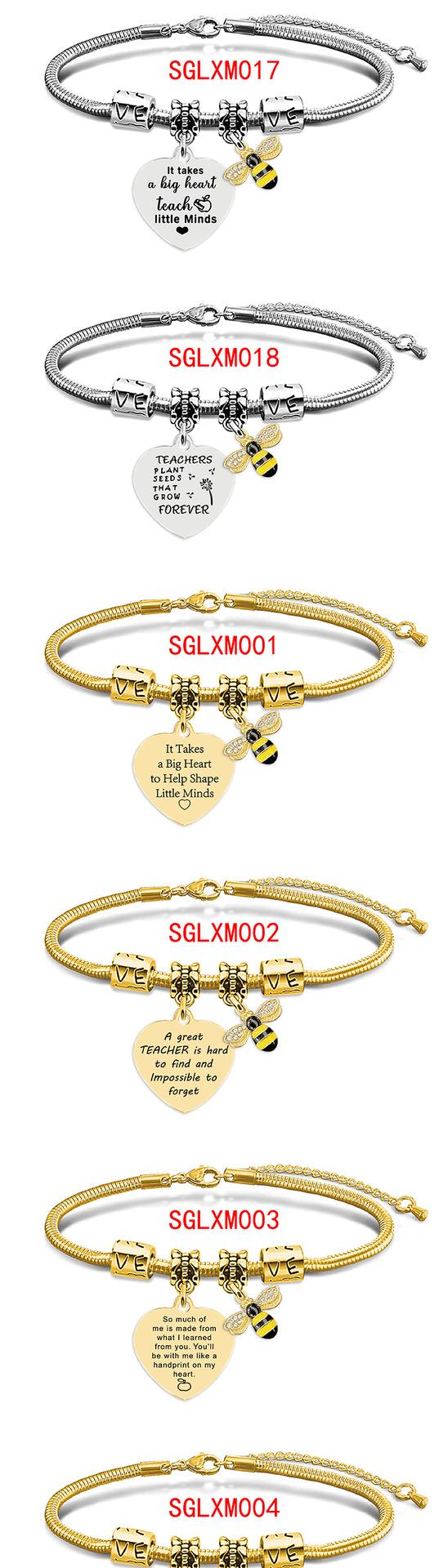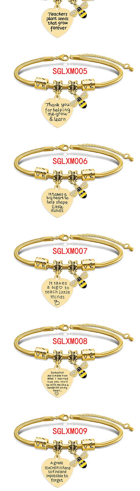Compra Pulsera de acero inoxidable con diseño de hueso de serpiente transfronterizo europeo y americano, regalo festivo de abeja para el Día del Maestro, pulsera de acero de titanio con letras, venta al por mayor al por mayor en Joom.pro