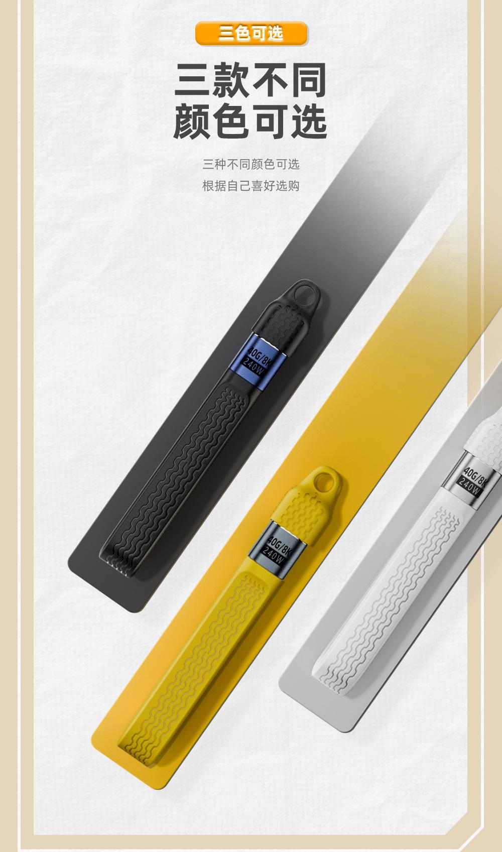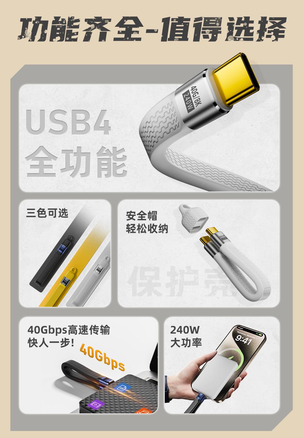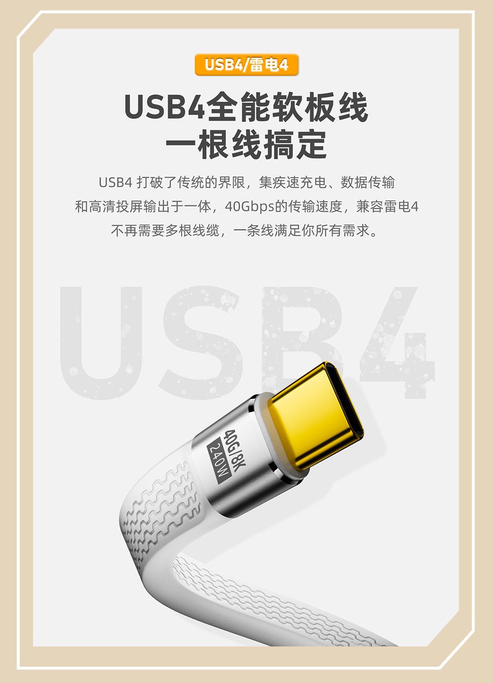 Cable de datos de alta velocidad USB4 de doble cabezal tipo C macho a macho, transmisión de 40 Gbps, cable plano suave FPC, carga rápida de 240 W