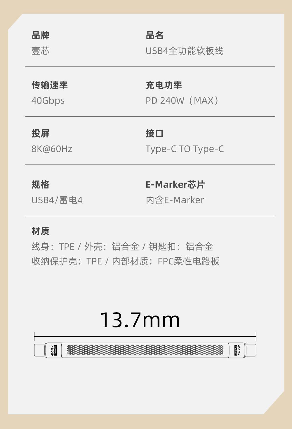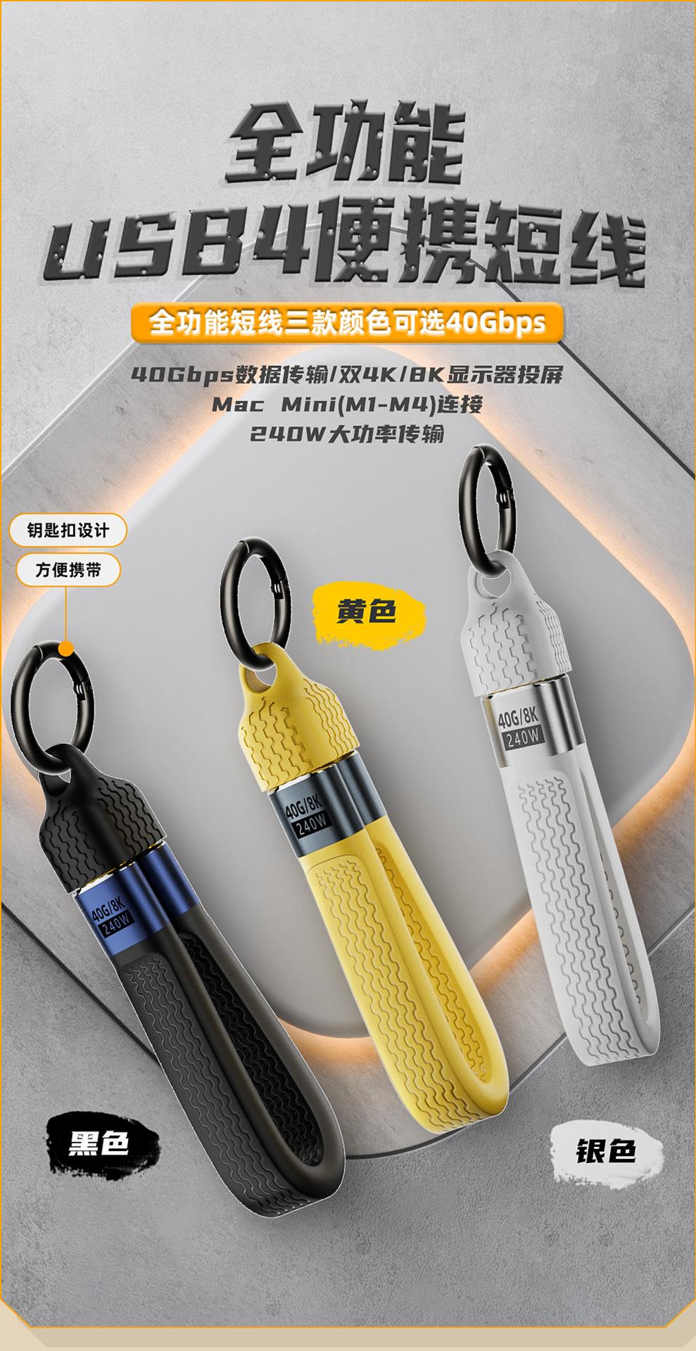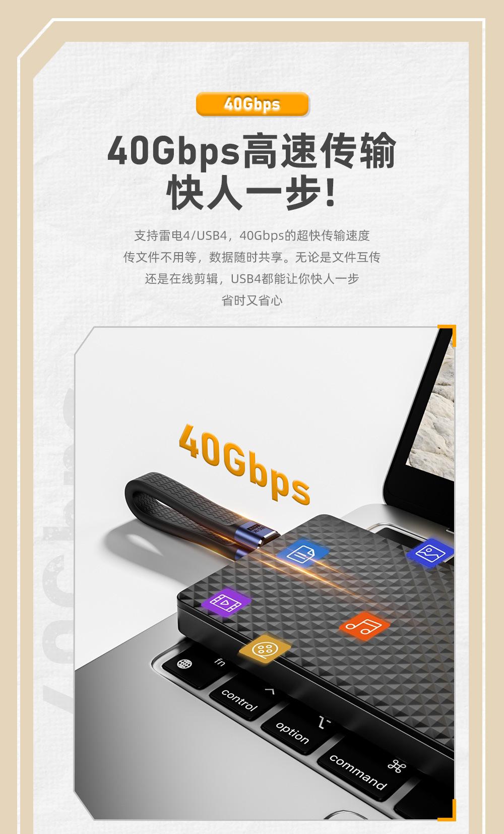 Cable de datos de alta velocidad USB4 de doble cabezal tipo C macho a macho, transmisión de 40 Gbps, cable plano suave FPC, carga rápida de 240 W