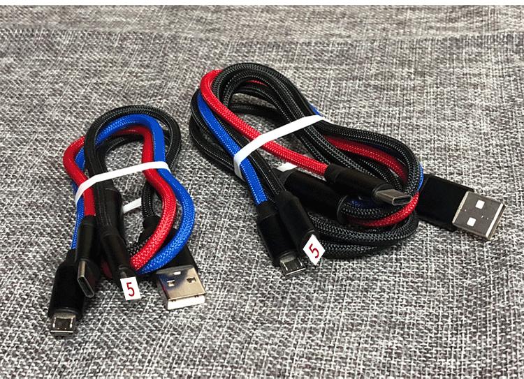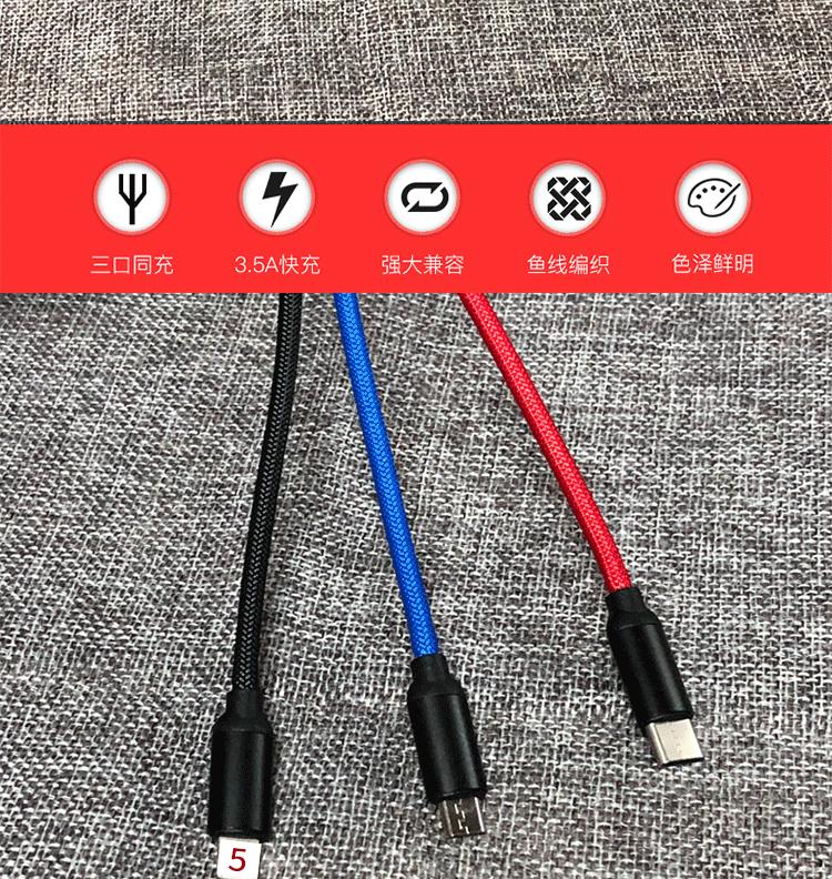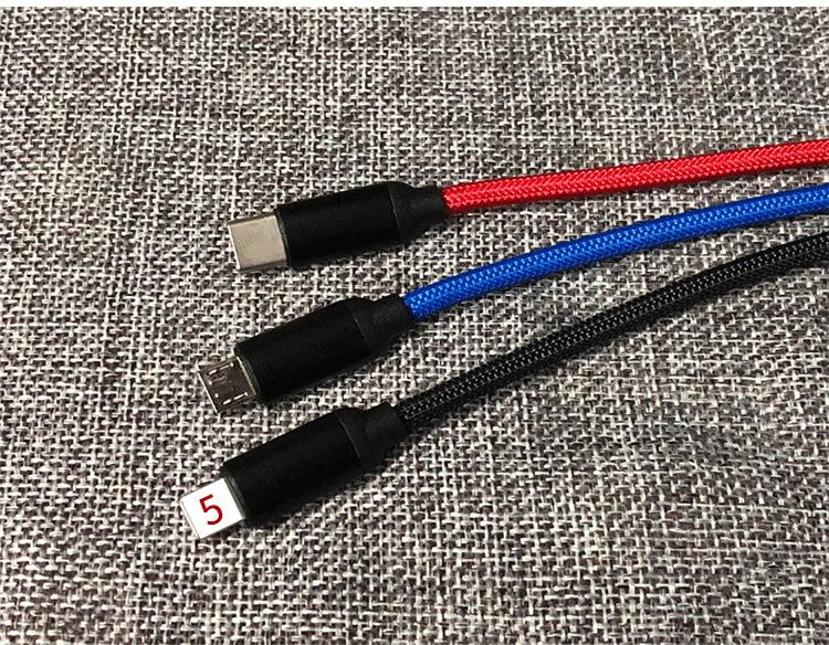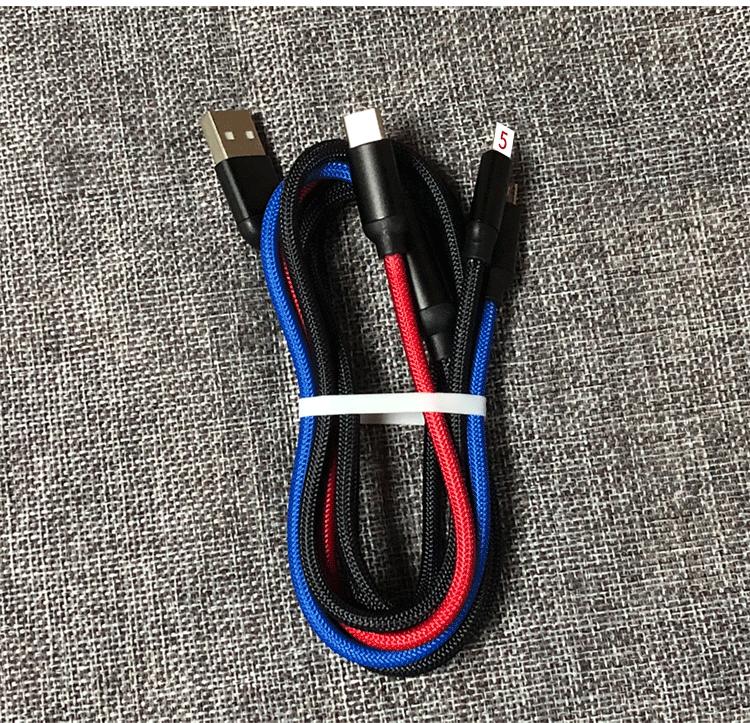 Nombre del producto: Cable de carga trenzado tricolor de uno a tres (admite personalización de regalo)