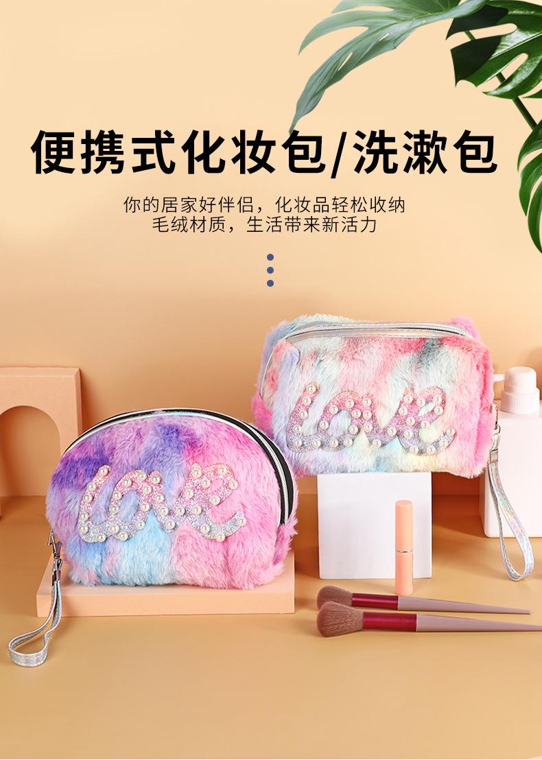Compra Bolsa de almacenamiento creativa de felpa de color, nueva, 2023, bolsa de lavado portátil para el hogar, bolsa de cosméticos portátil de moda para viajes al por mayor en Joom.pro