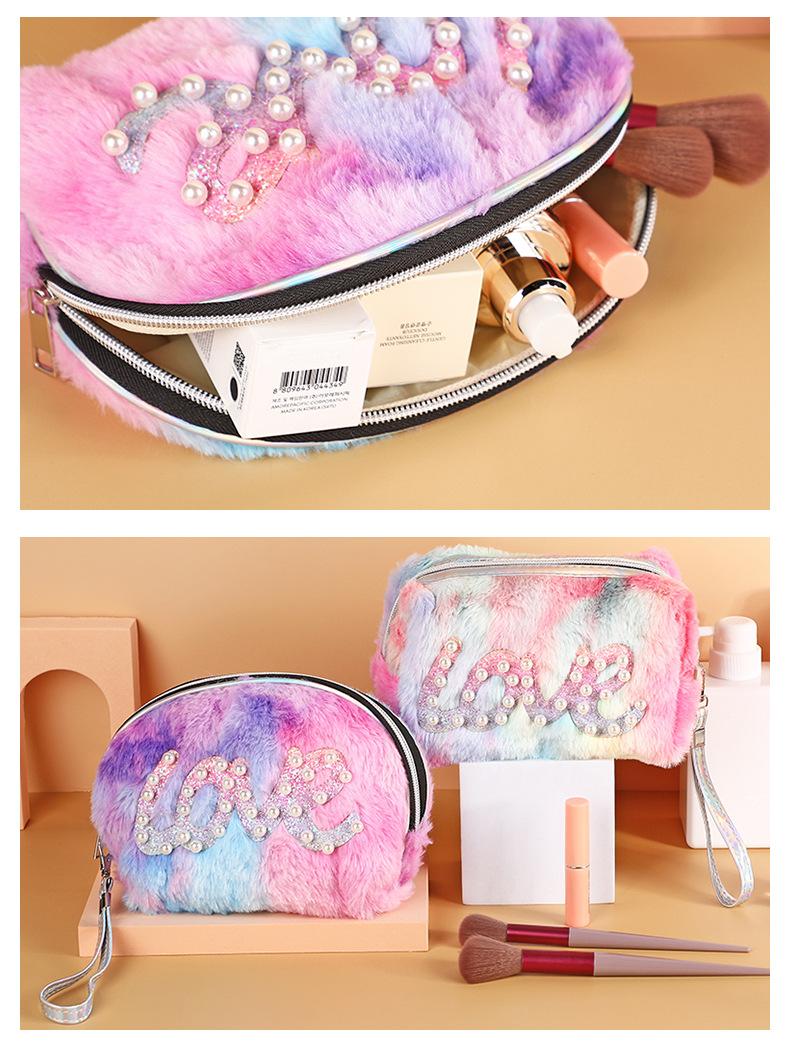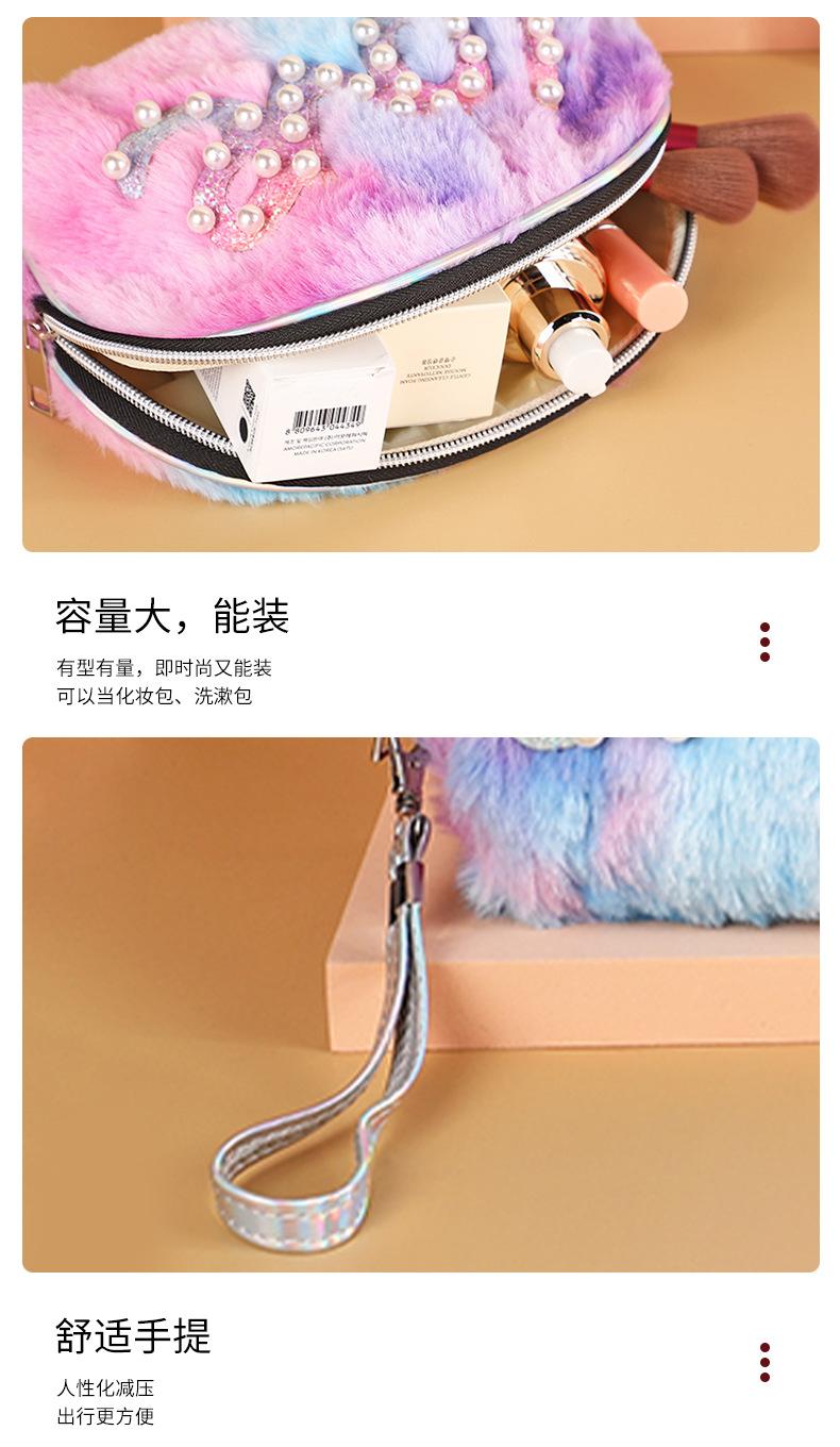 Bolsa de almacenamiento creativa de felpa de color, nueva, 2023, bolsa de lavado portátil para el hogar, bolsa de cosméticos portátil de moda para viajes