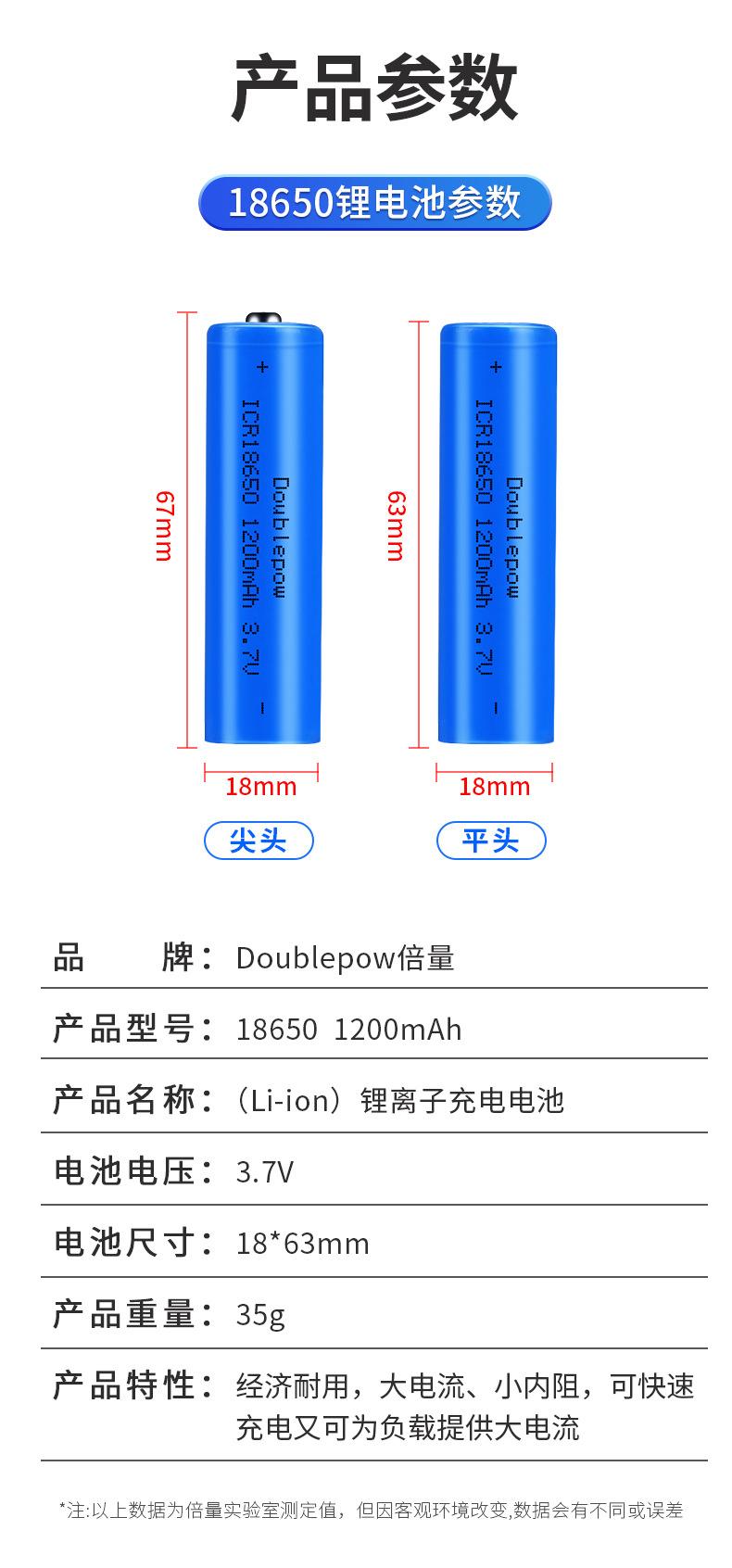 Batería de Litio Recargable 18650 Múltiple 3.7V Capacidad Total 1200 Mah Ventilador Pequeño Linterna Se Puede Combinar con Baterías