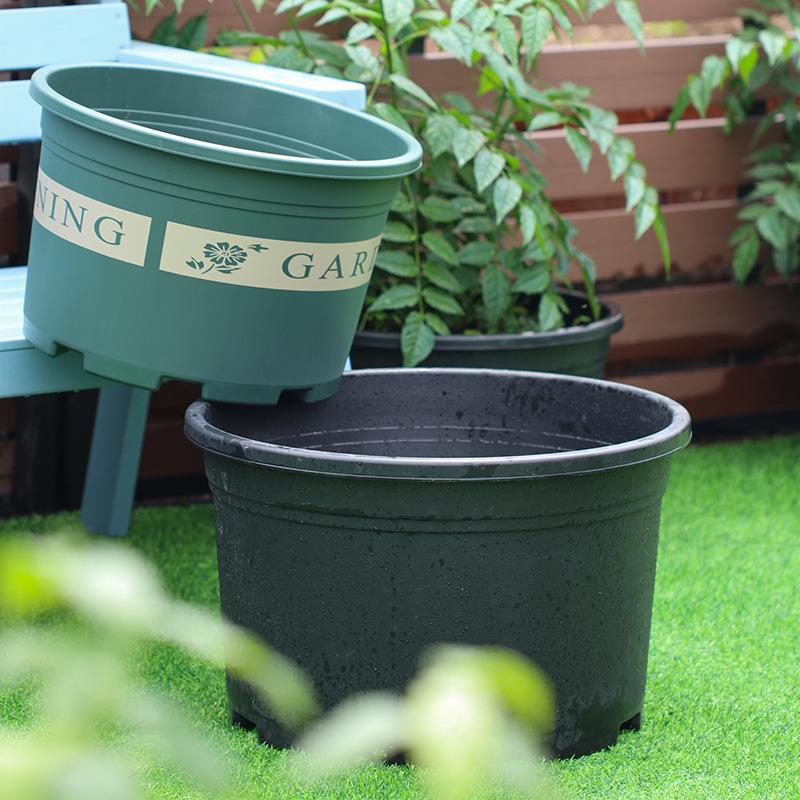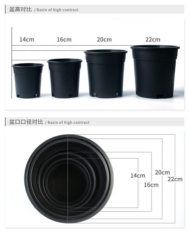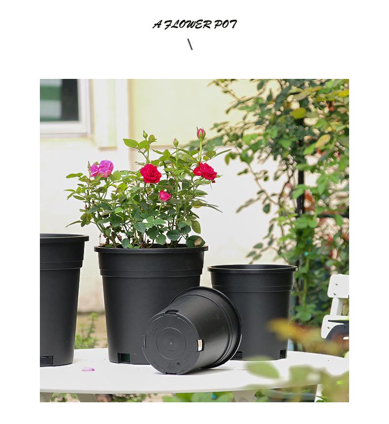 Maceta de plástico negra de galón para lavabo, maceta para plantas verdes, rosa verde, rosa, fondo plano, orificio lateral, base de lavabo, venta al por mayor de fábrica