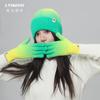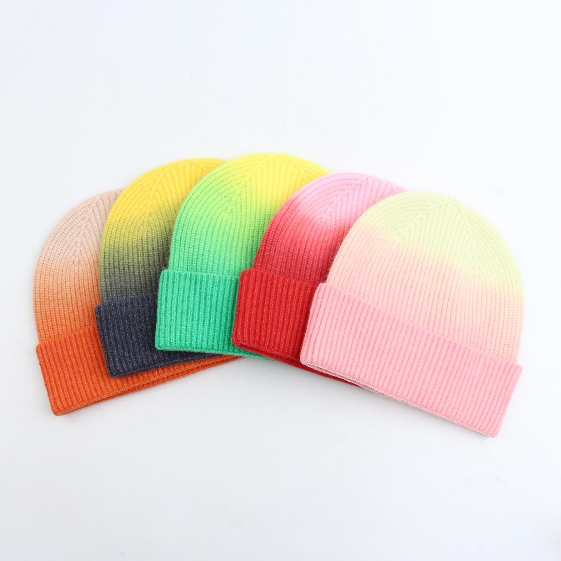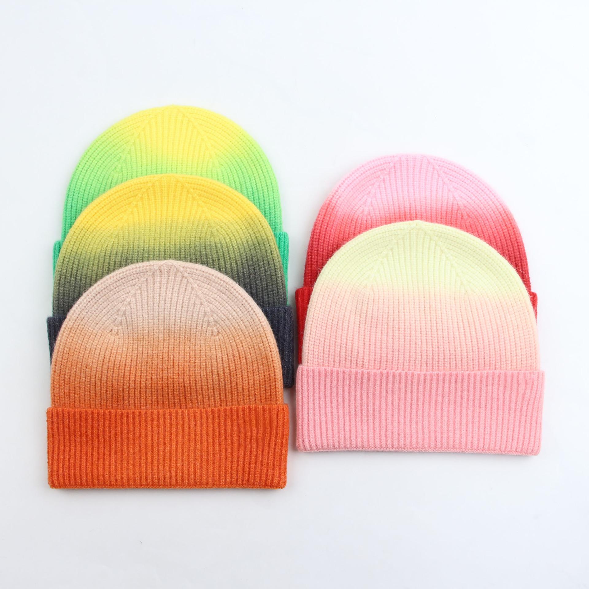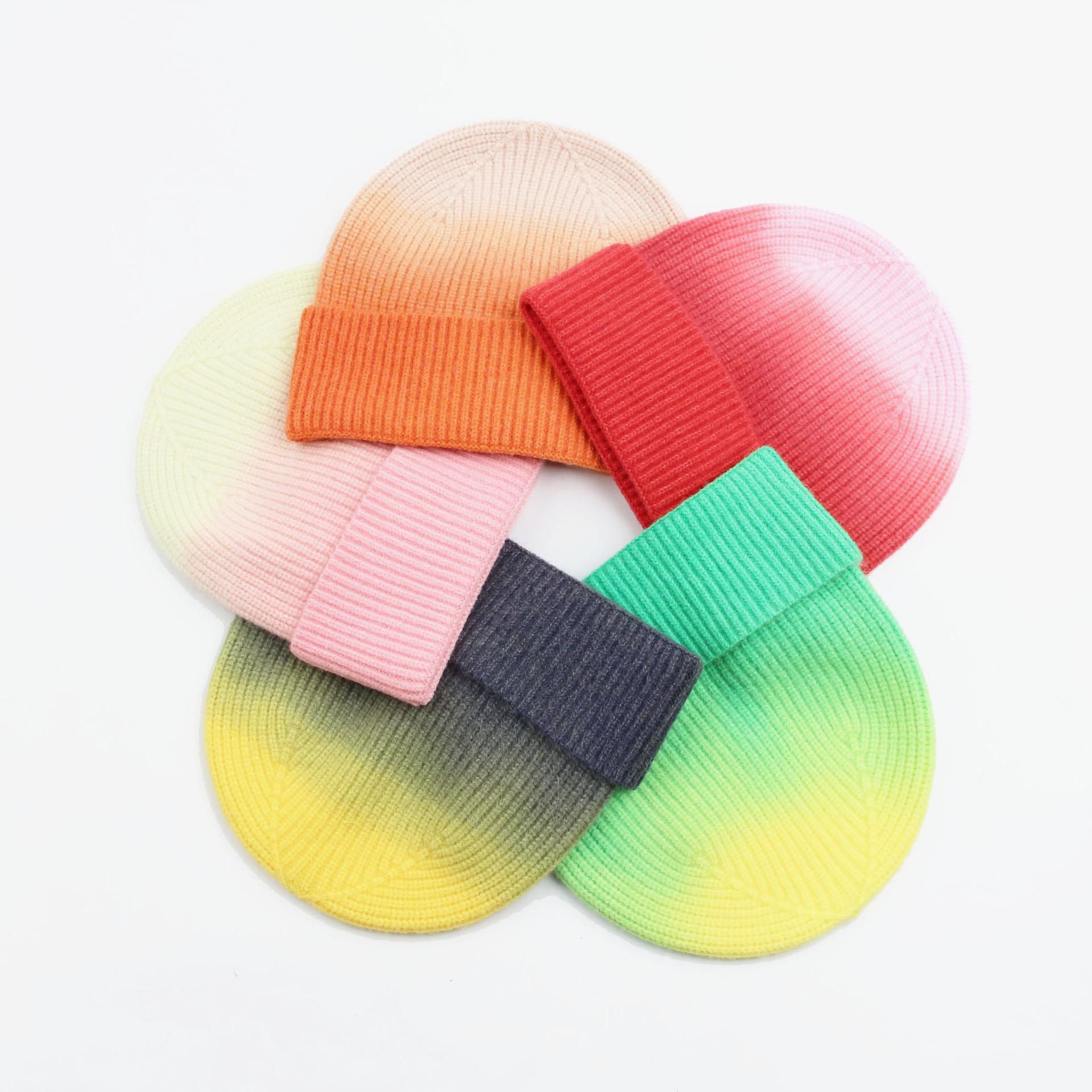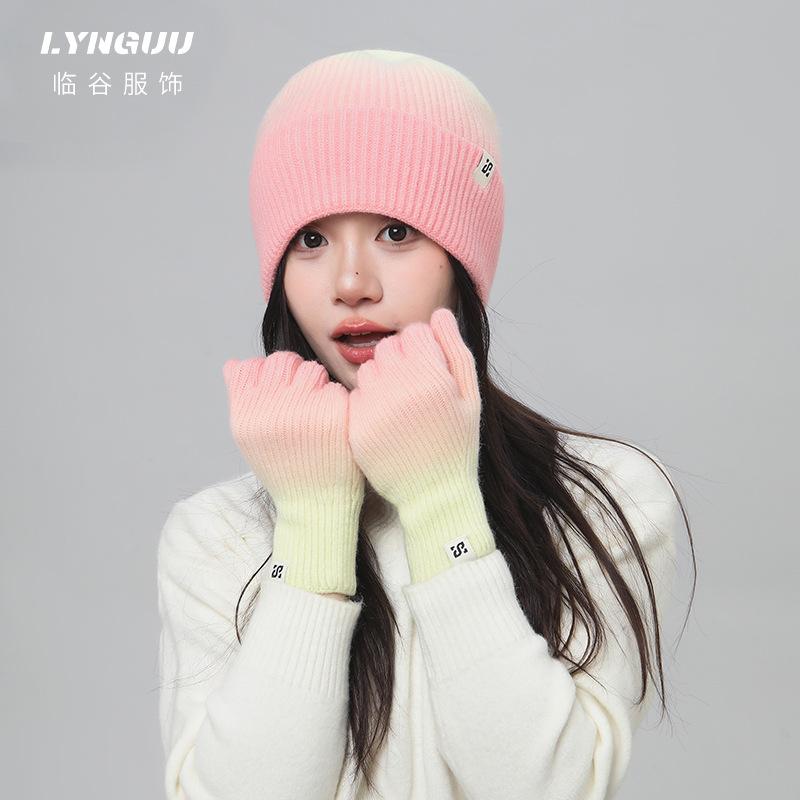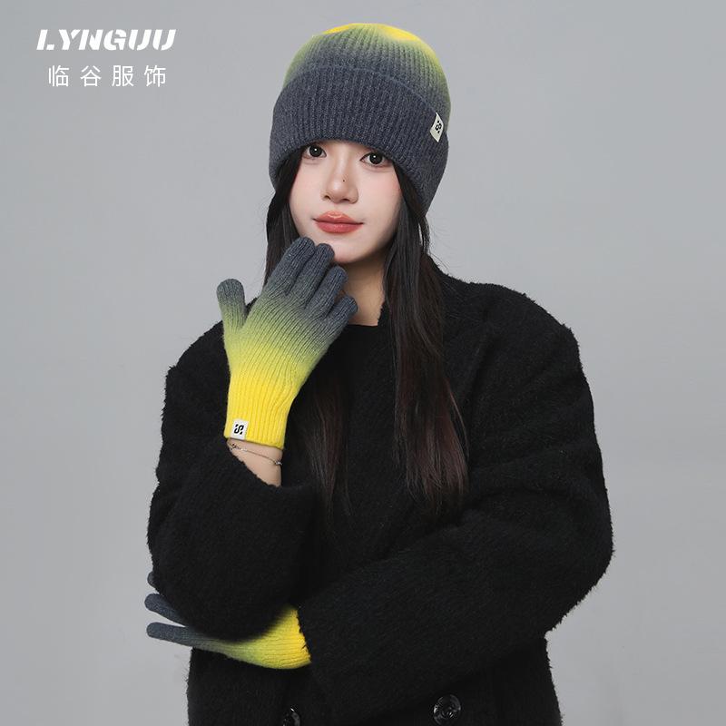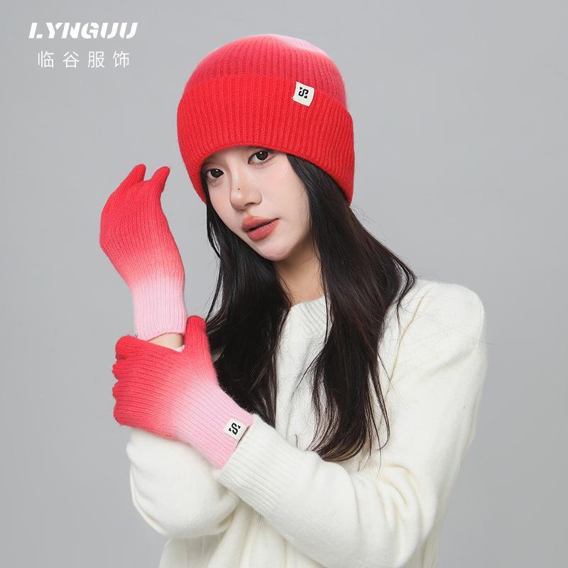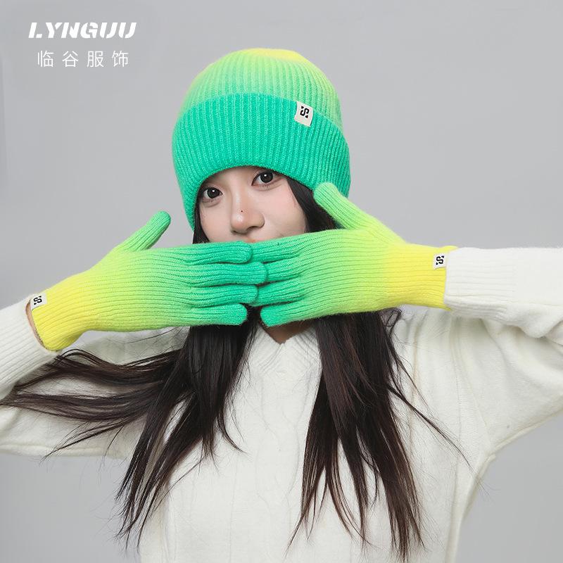 Otoño e Invierno Color Degradado Cálido Gorro de Punto Guantes Moda Circunferencia de Cabeza Grande Deportes de Esquí Gorro para el Frío Teñido Anudado Conjunto de Gorro de Lana