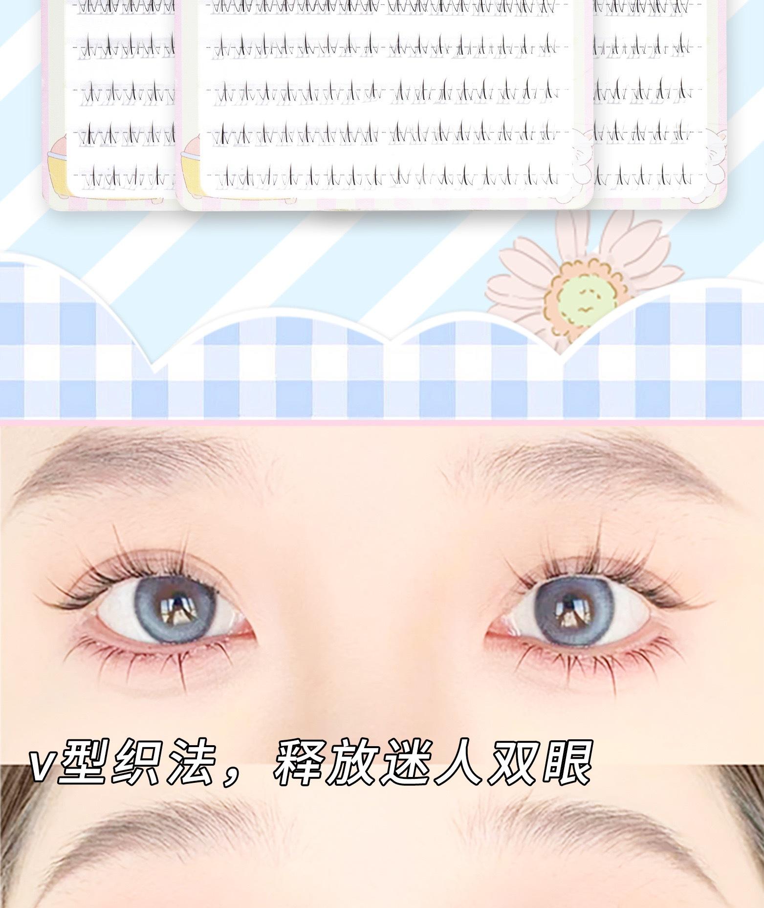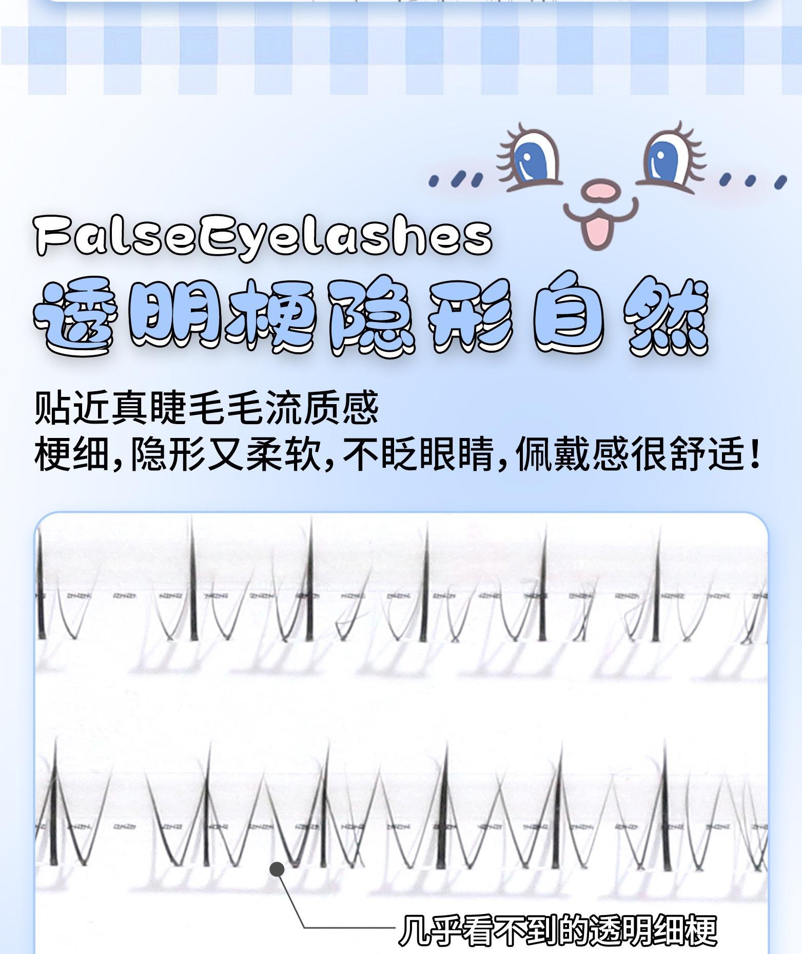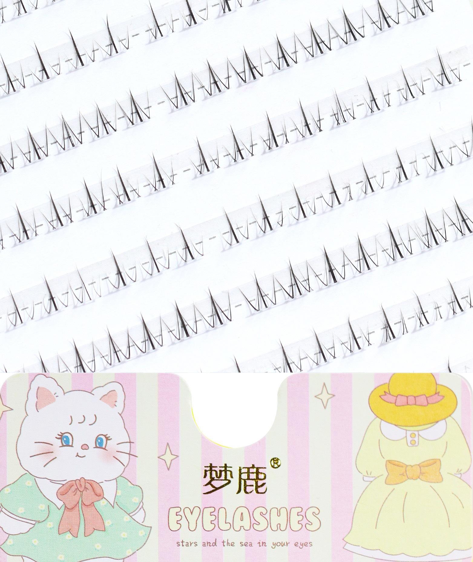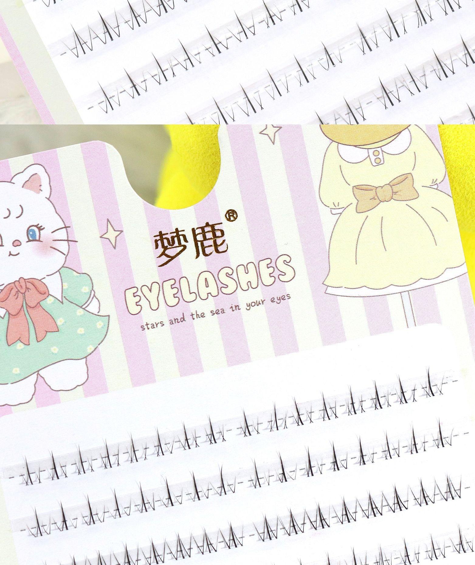 Menglu 10 filas de pestañas bajo pequeñas llamas versión J pestañas postizas segmentadas de un solo grupo transparente ojos de dibujos animados fotogénicos naturales