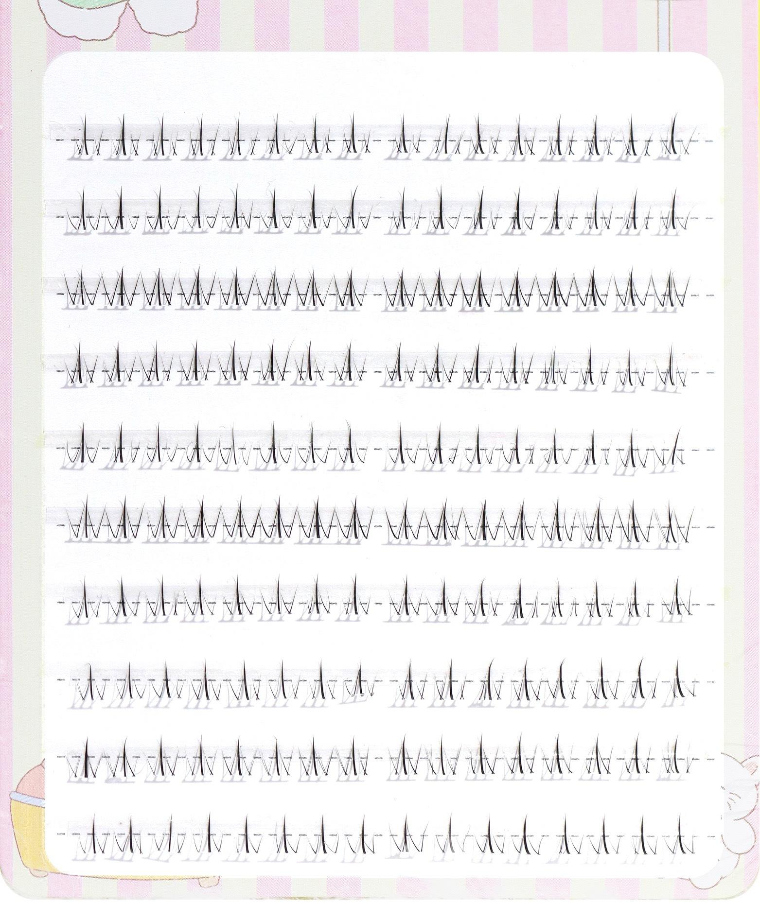 10-row wispy lower lashes - j curl, 10-row hand-inserted version with small flames-s version, Fd16 under 10 rows of small flames