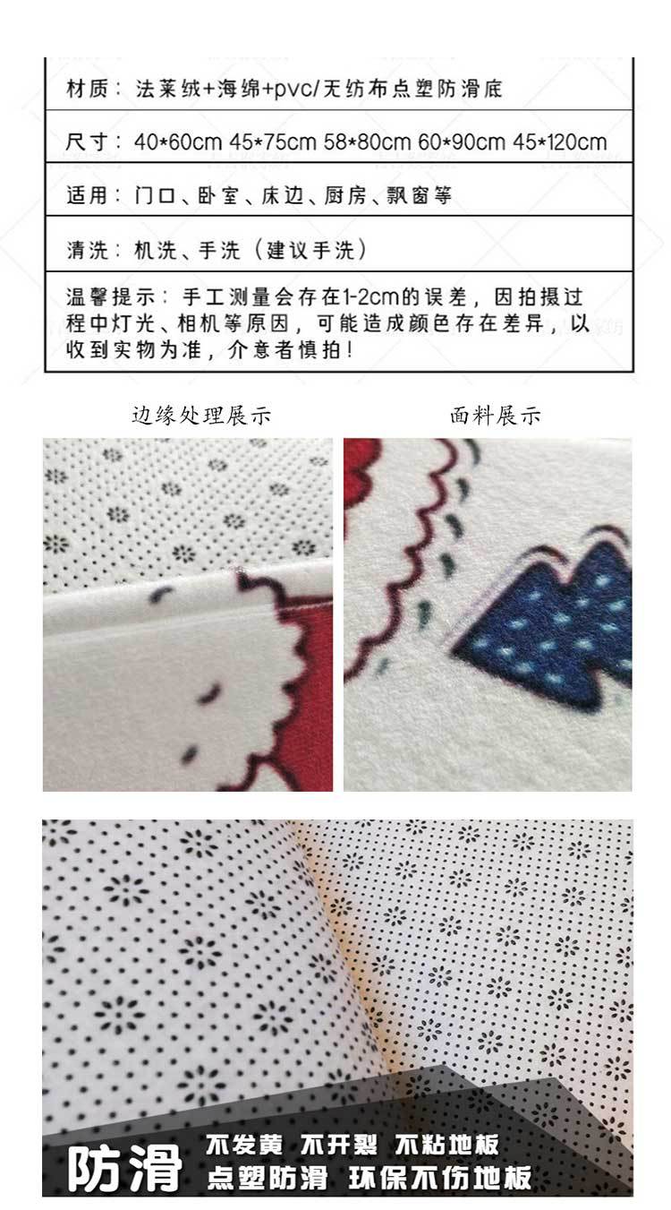 Tela de franela engrosada + esponja de 1.2 cm de grosor + fondo antideslizante de plástico con puntos