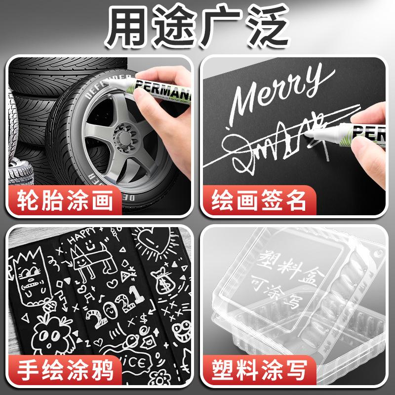 Marcador blanco no borrable, bolígrafo logístico oleoso, de secado rápido, marcador de punta grande, resistente al agua y al aceite, de una sola punta y que no se decolora.