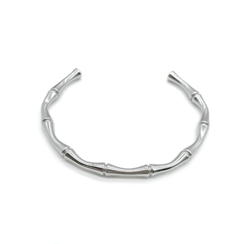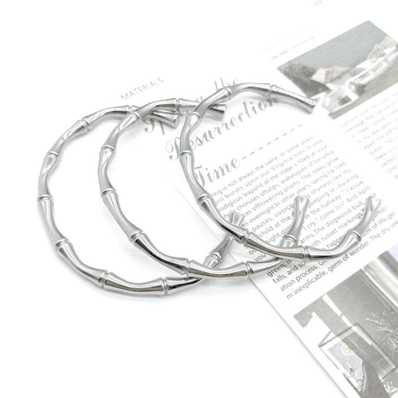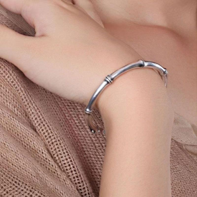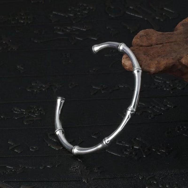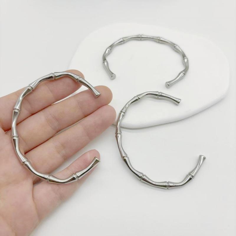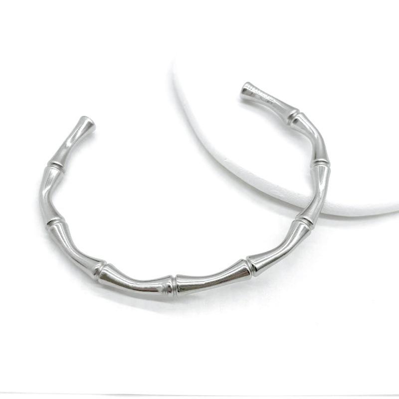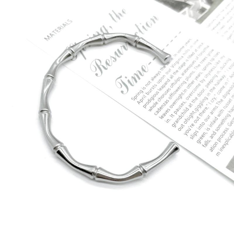 Pulsera abierta en forma de C de bambú y acero inoxidable de estilo europeo y americano, pulsera de acero de titanio de alta calidad.