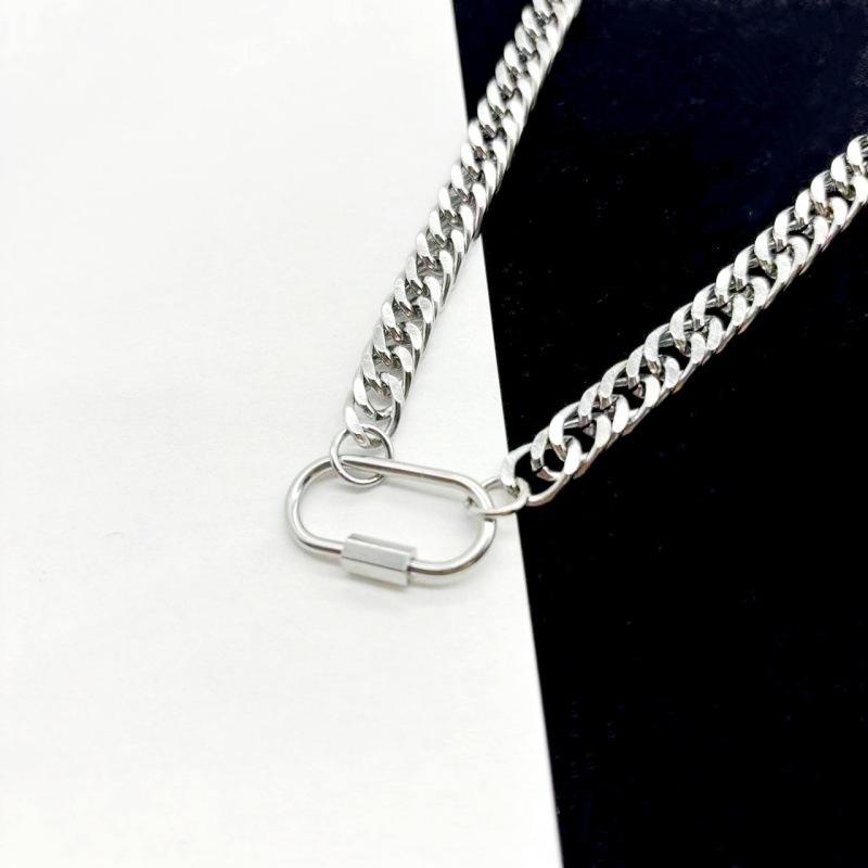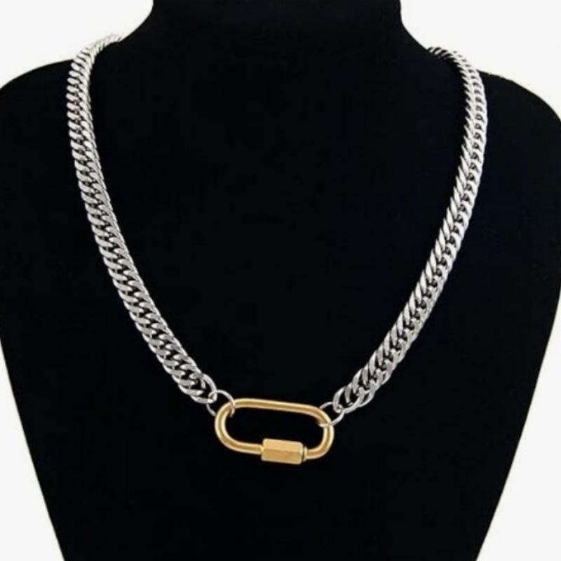 Compra Nuevo collar de acero inoxidable de doble tejido con colgante geométrico personalizado para mujer, cadena de clavícula, cadena de suéter, cadena cubana de acero de titanio al por mayor en Joom.pro
