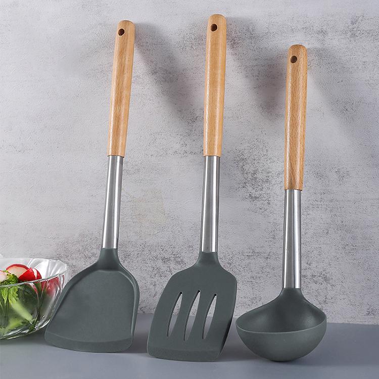 Espátula de Silicona Set de Espátulas para Olla Antiadherente para Hogar Resistente a Altas Temperaturas Cuchara para Freír Cuchara para Sopa Espátula para Cocinar Cuchara de Madera Cocina Nube