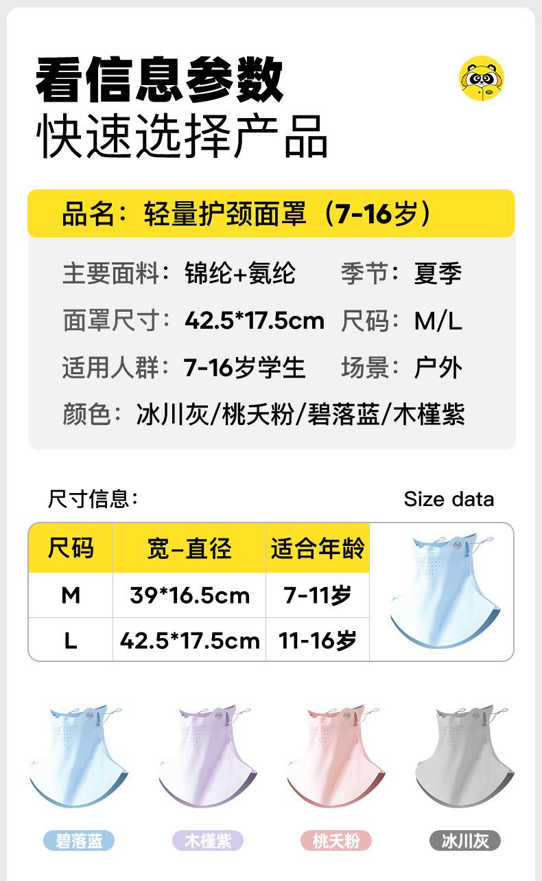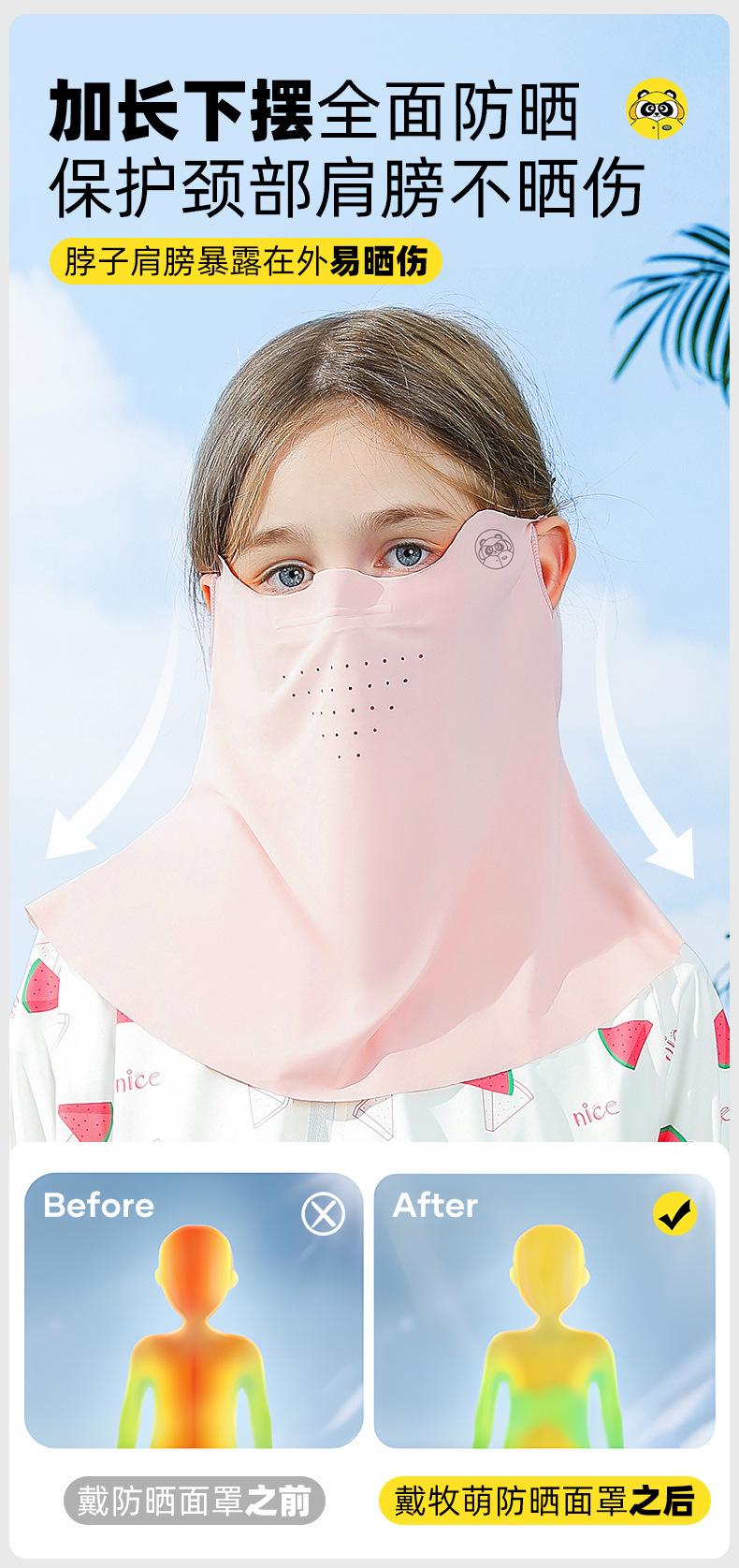 Mascarilla Infantil de Seda de Hielo con Protección Solar Especial para Niña Cubre Cara Completa y Cuello Verano Ligera y Transpirable Cubre Cuello