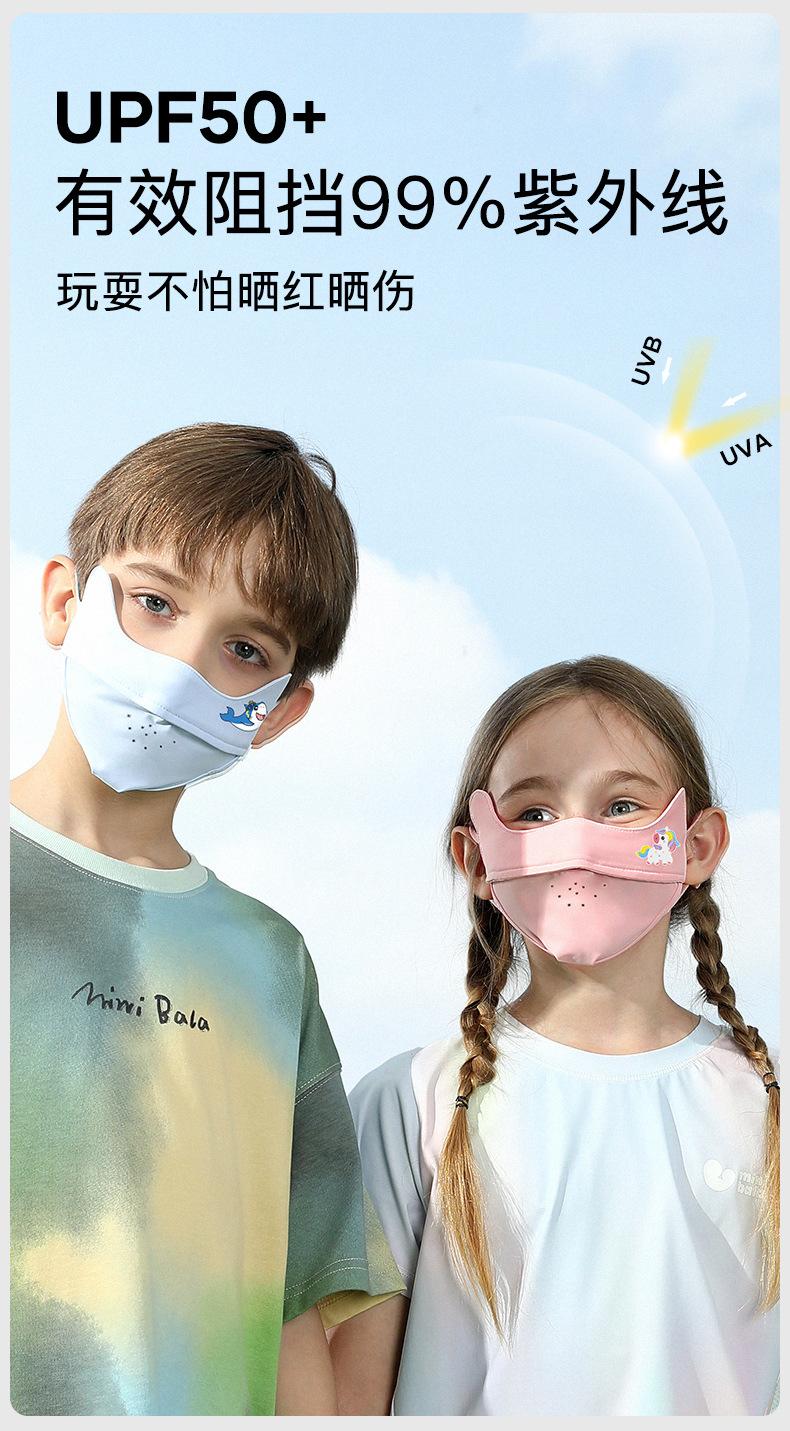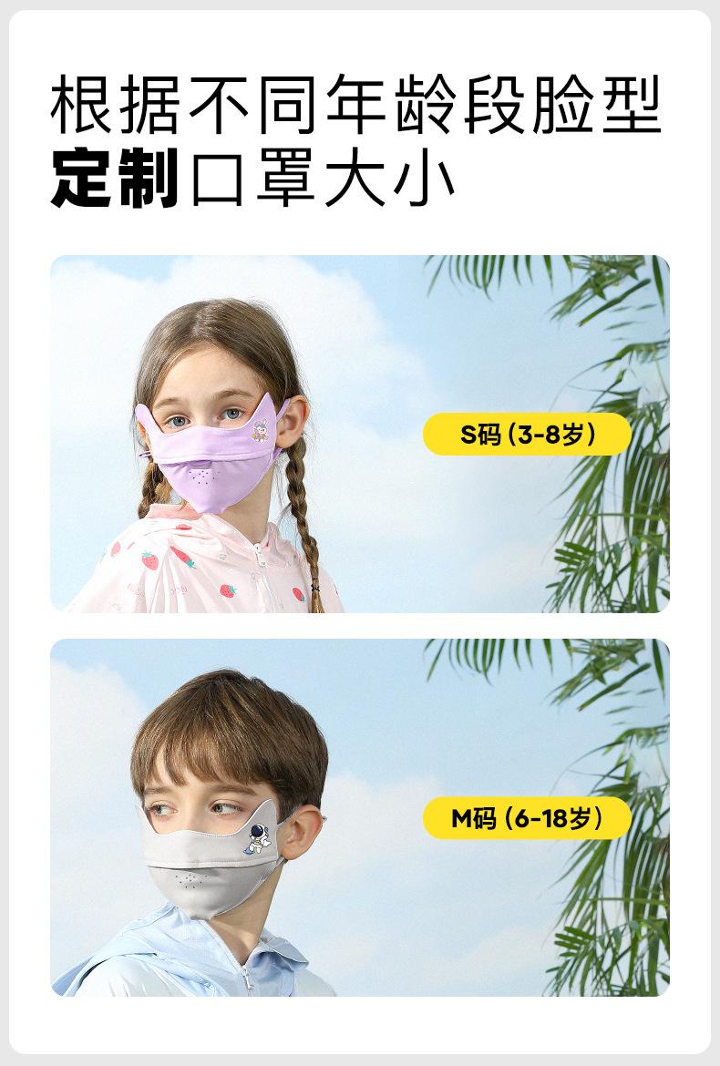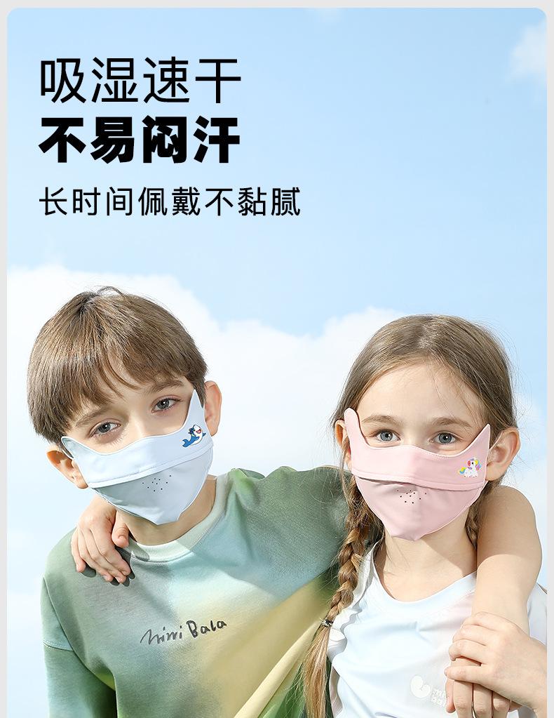 Mascarilla Protector Solar para Niños Anti-UV 8 a 12 Años Seda de Hielo Transpirable Verano Mascarilla Fina para Niños Niñas
