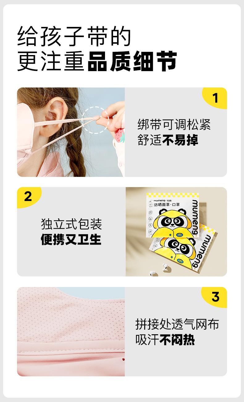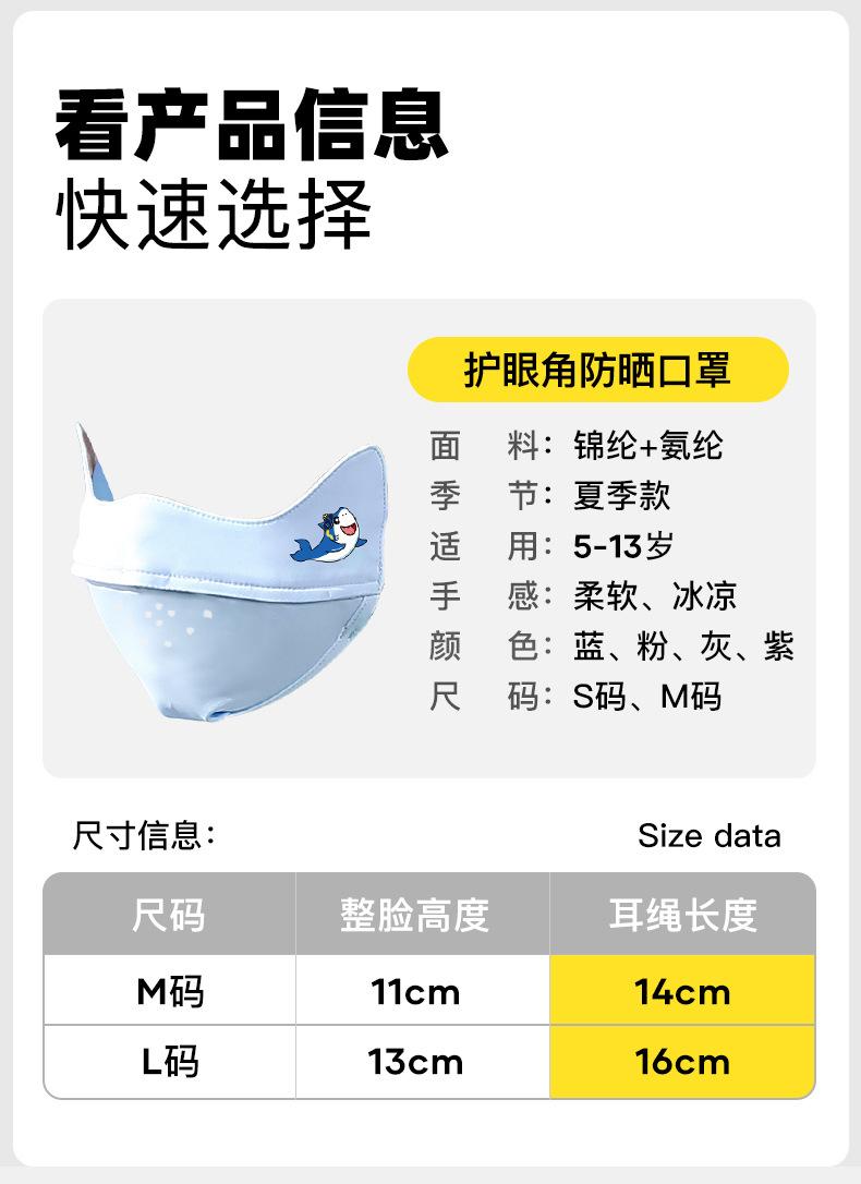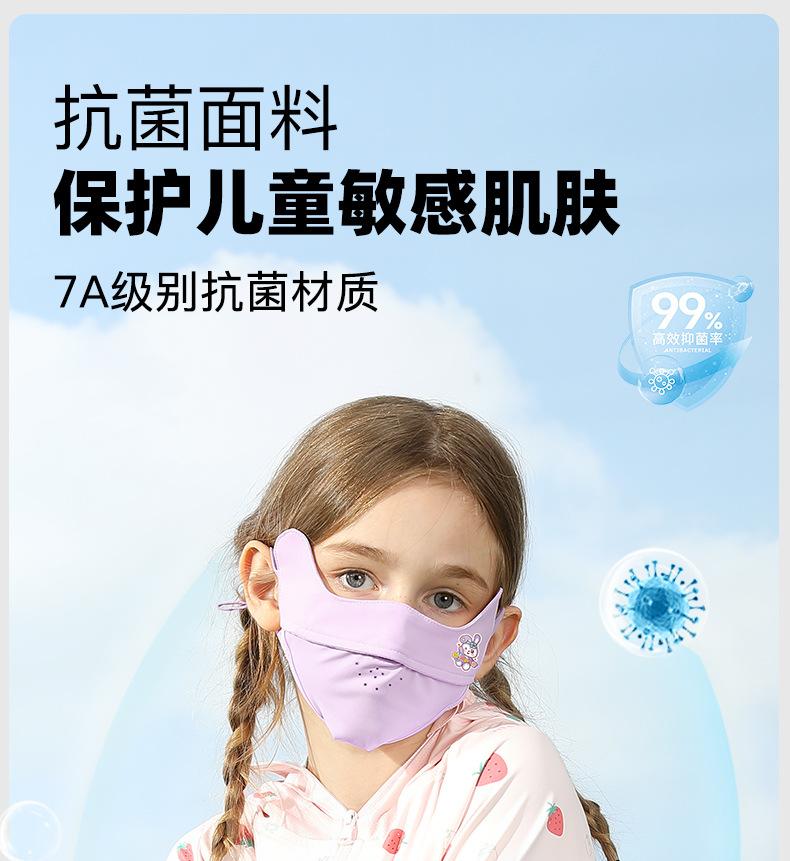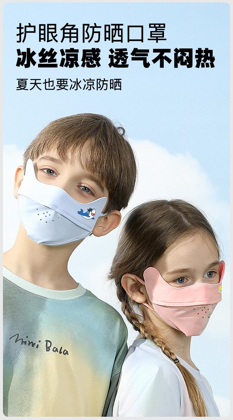 Mascarilla Protector Solar para Niños Anti-UV 8 a 12 Años Seda de Hielo Transpirable Verano Mascarilla Fina para Niños Niñas