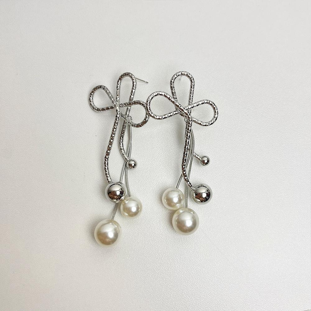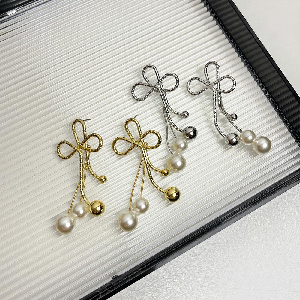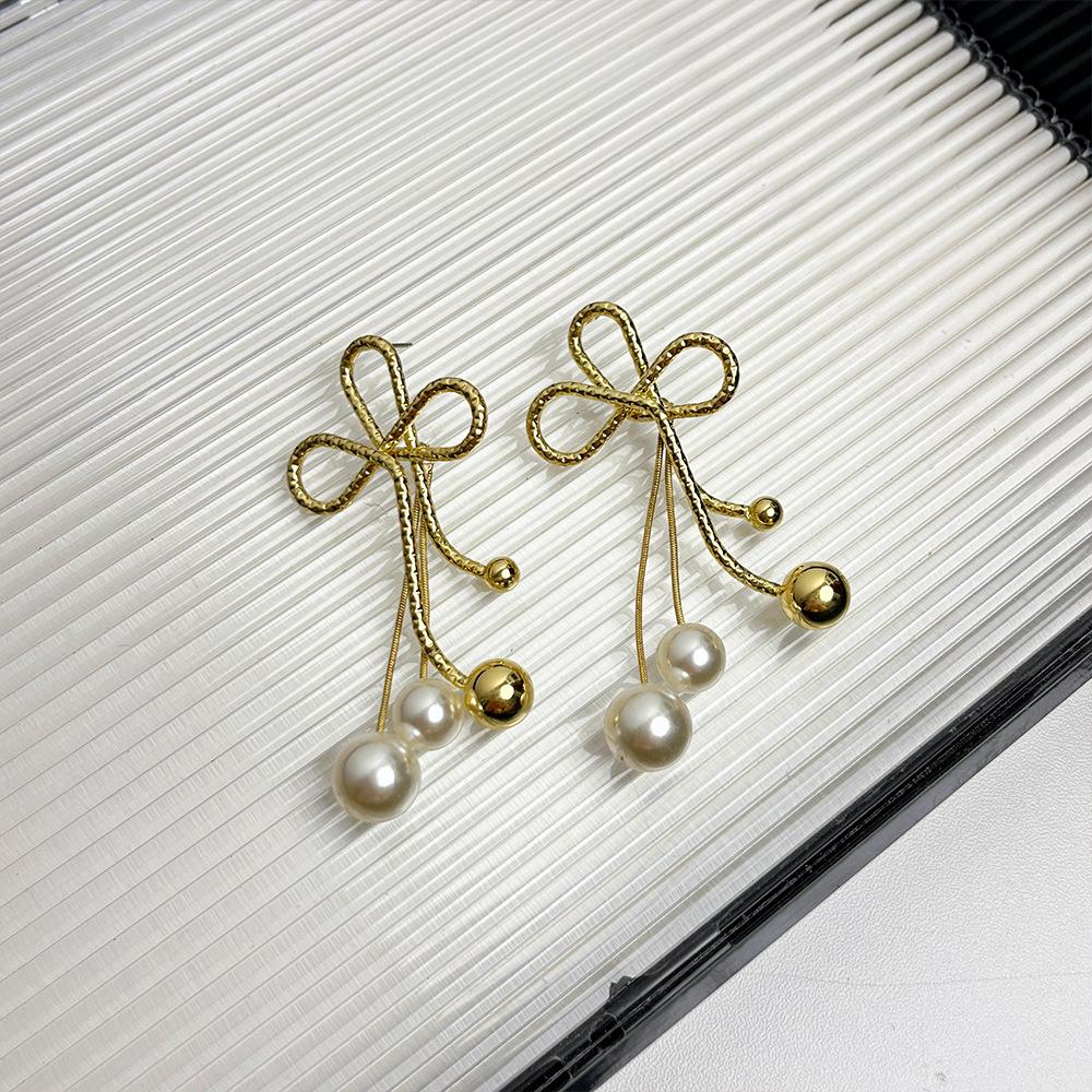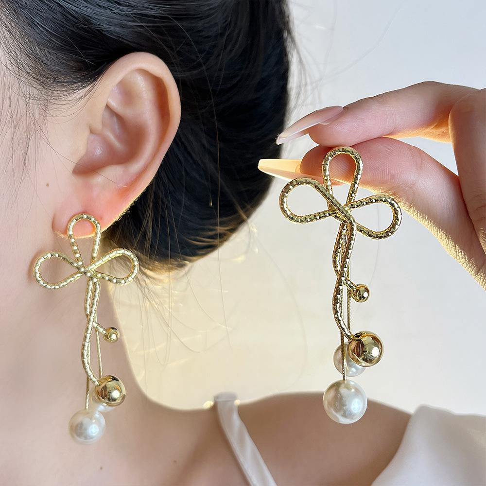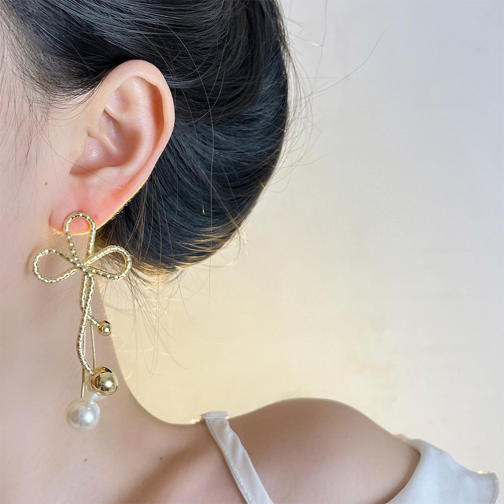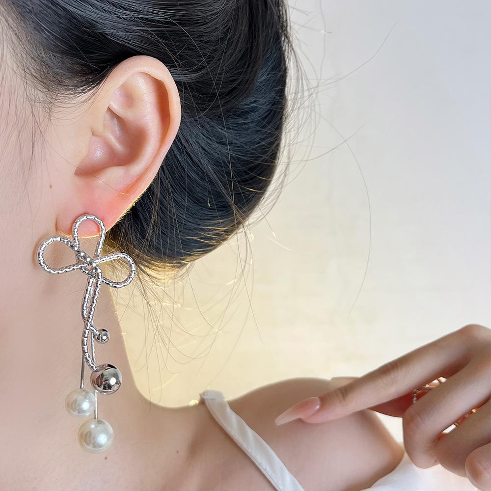 Pendientes de borlas de perlas elegantes, ligeros y lujosos de estilo francés para mujer, con diseño de nicho y lazo, ligeros y lujosos, con un toque avanzado.