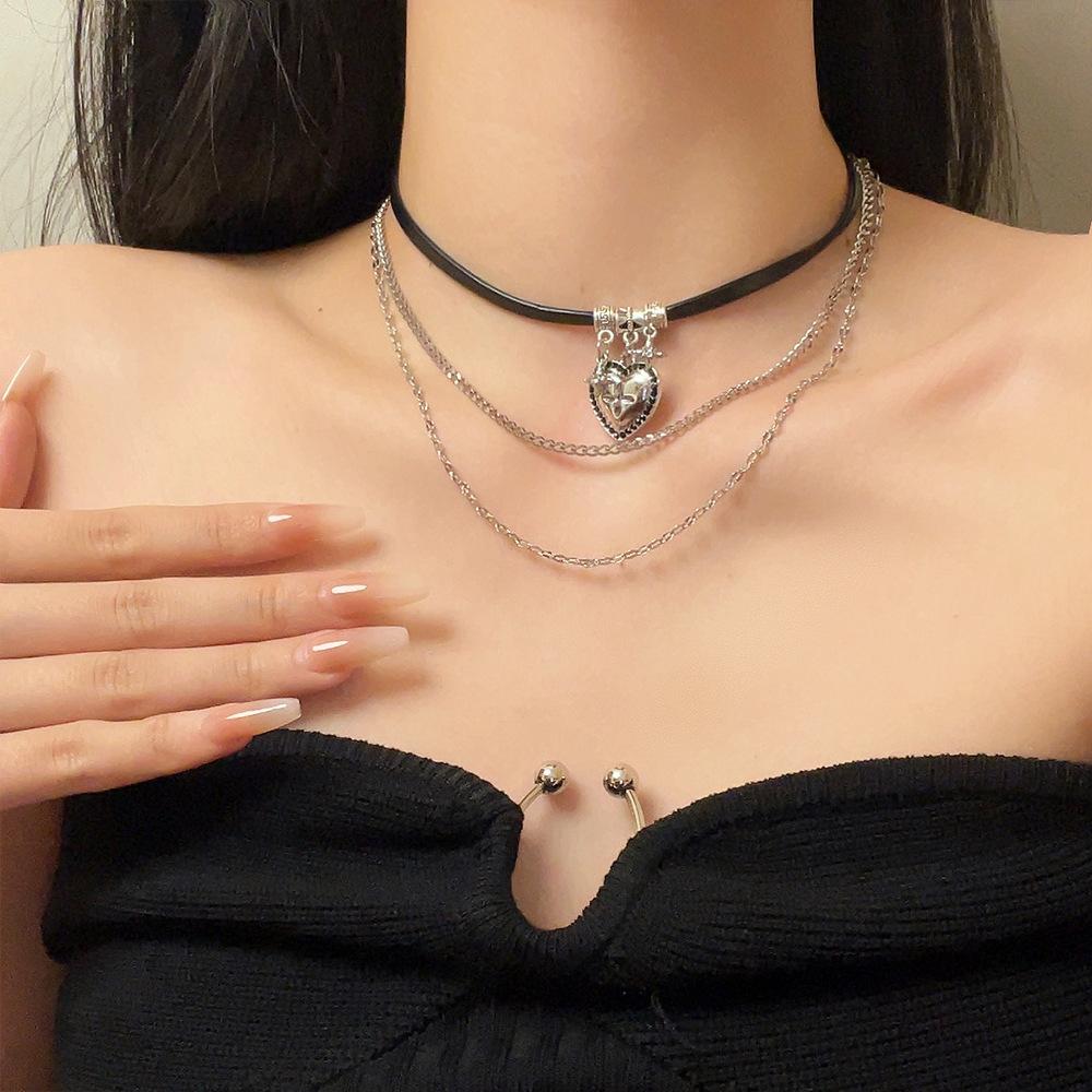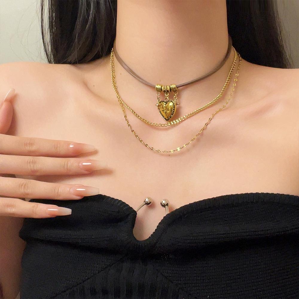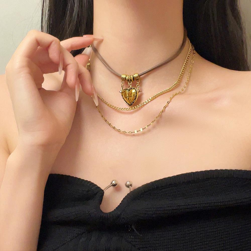 Gargantilla de cuero laminado con diseño de amor, estilo dúo, oscuro, dulce y fresco, collar ligero de lujo de alta gama para mujer, cadena de clavícula de nicho vintage