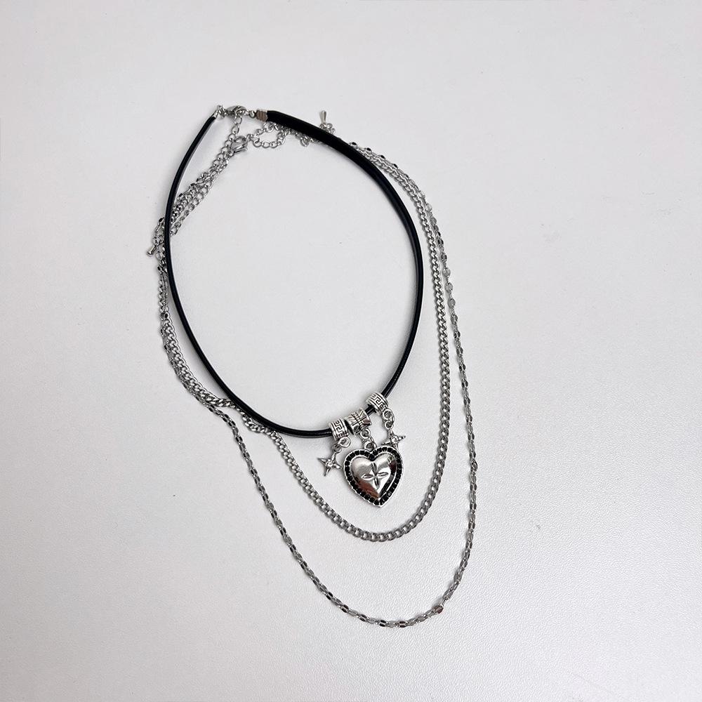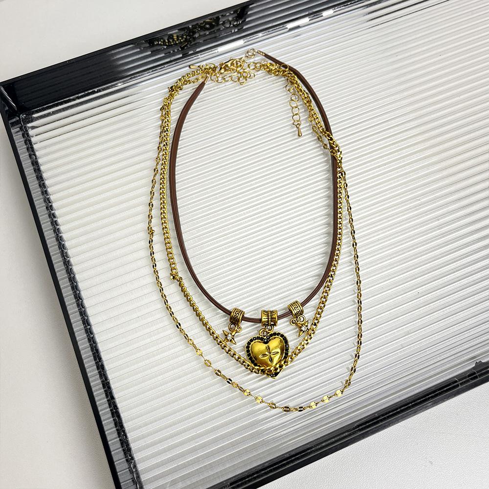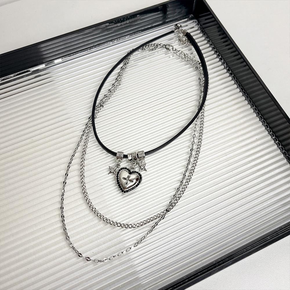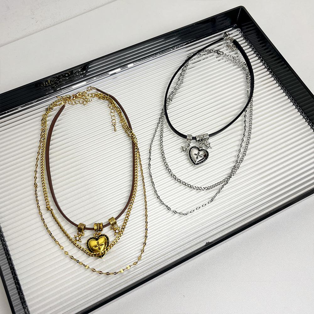 Gargantilla de cuero laminado con diseño de amor, estilo dúo, oscuro, dulce y fresco, collar ligero de lujo de alta gama para mujer, cadena de clavícula de nicho vintage