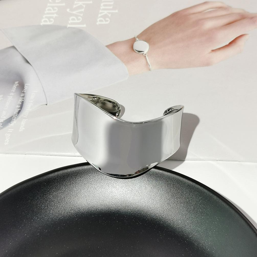 Pulsera ancha de superficie irregular europea y americana plata personalidad exagerada moda estilo frío simple abierta transfronteriza pulsera de venta caliente