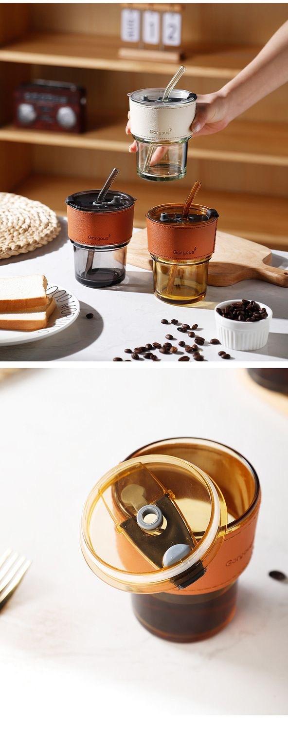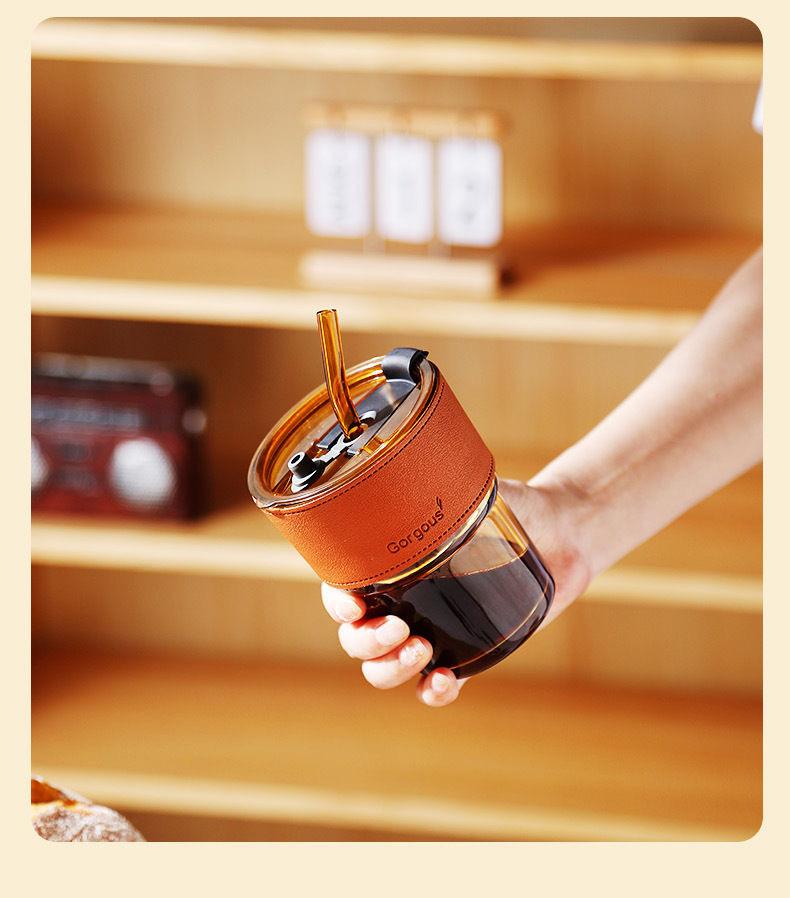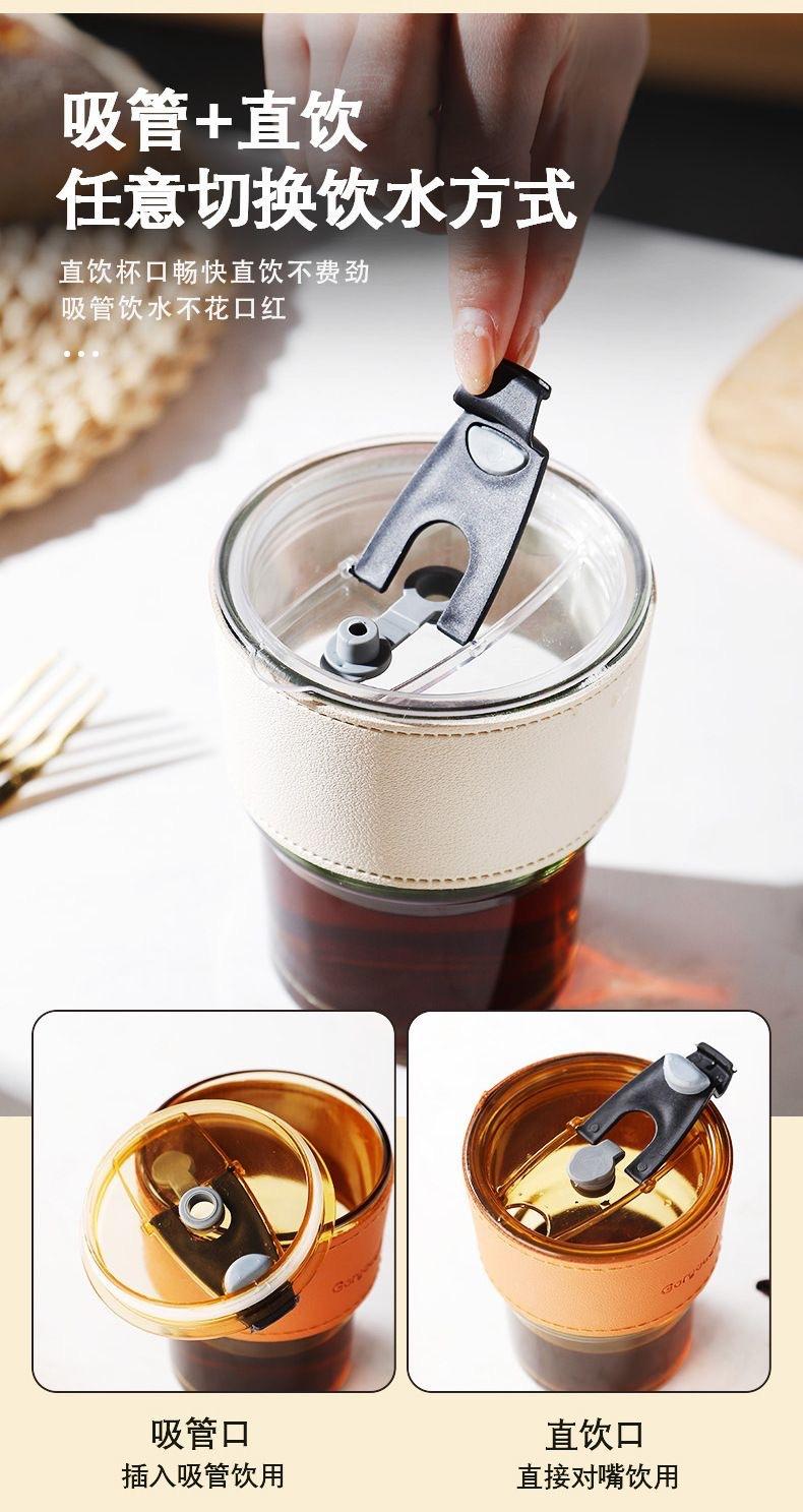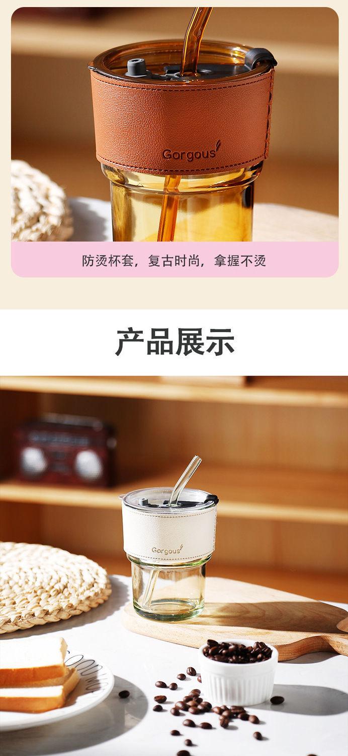 Amber + cup sleeve + straw + lid, Transparent color + white cup sleeve + straw + lid, Transparent color + gree...