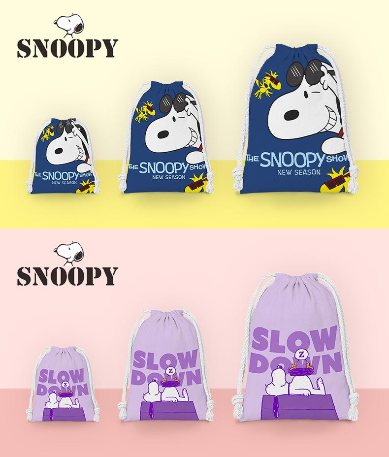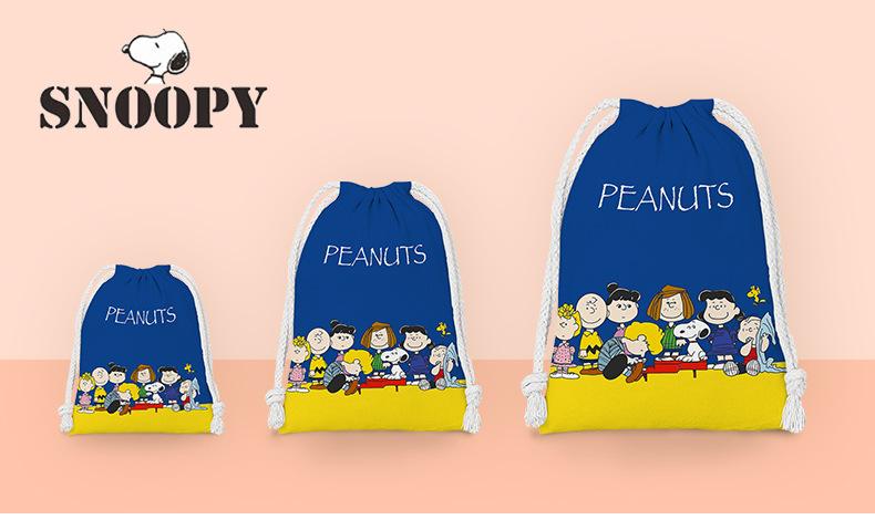 Compra Bolsa pequeña de tela con cordón de Snoopy con dibujos animados para guardar artículos diversos para estudiantes, neceser, neceser portátil al por mayor en Joom.pro