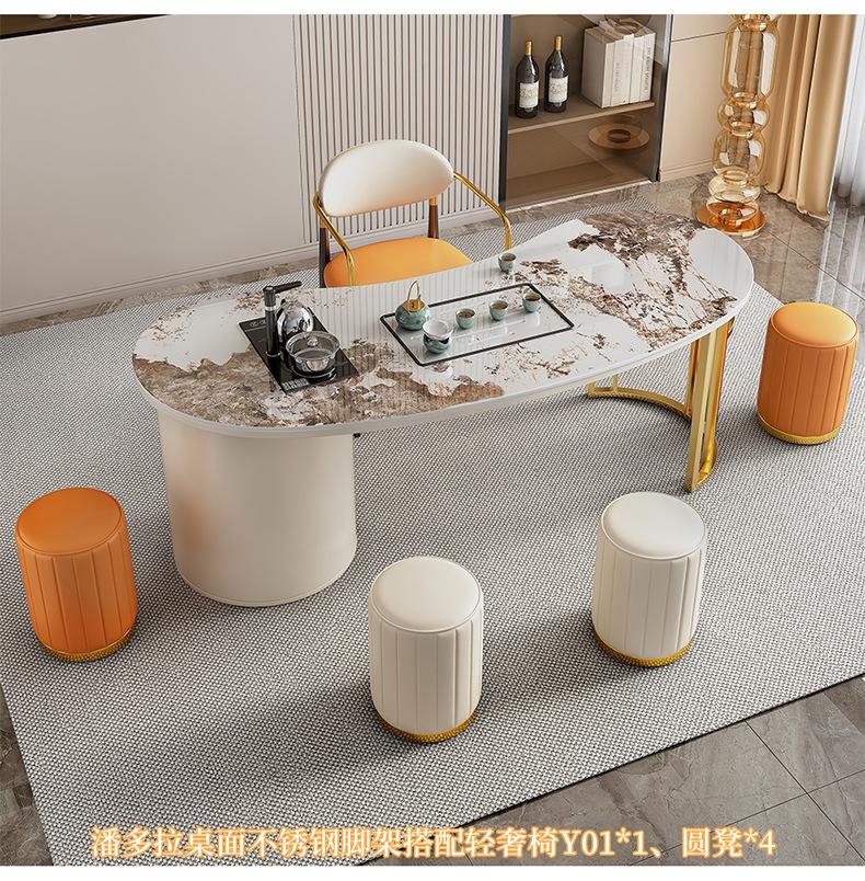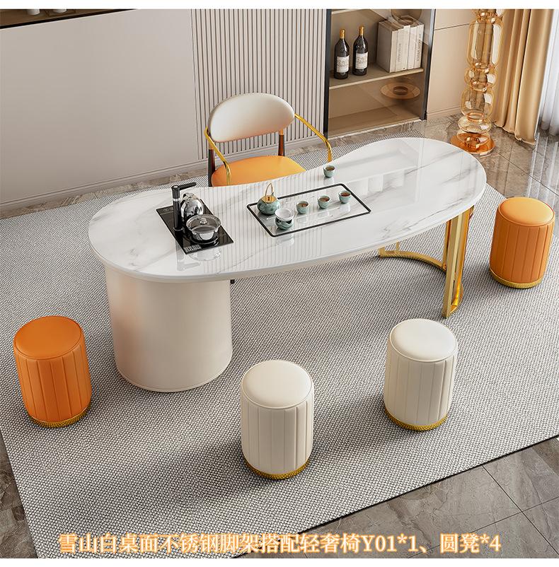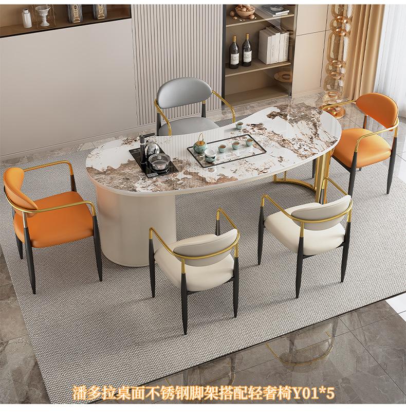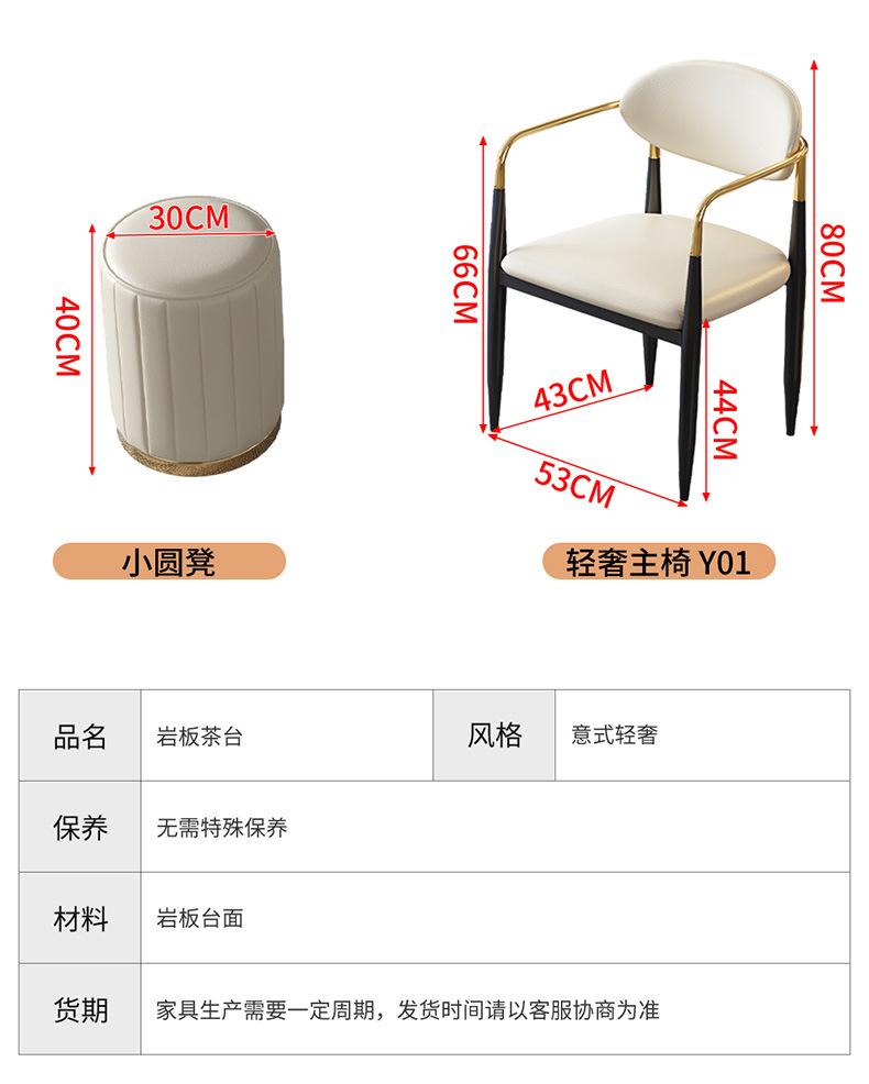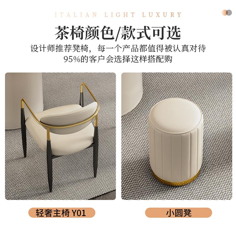 Mesa de té y silla de lujo ligera con tablero de roca, combinación sencilla y moderna, mesa de té para oficina, hogar, sala de estar, balcón, mesa de té pequeña.