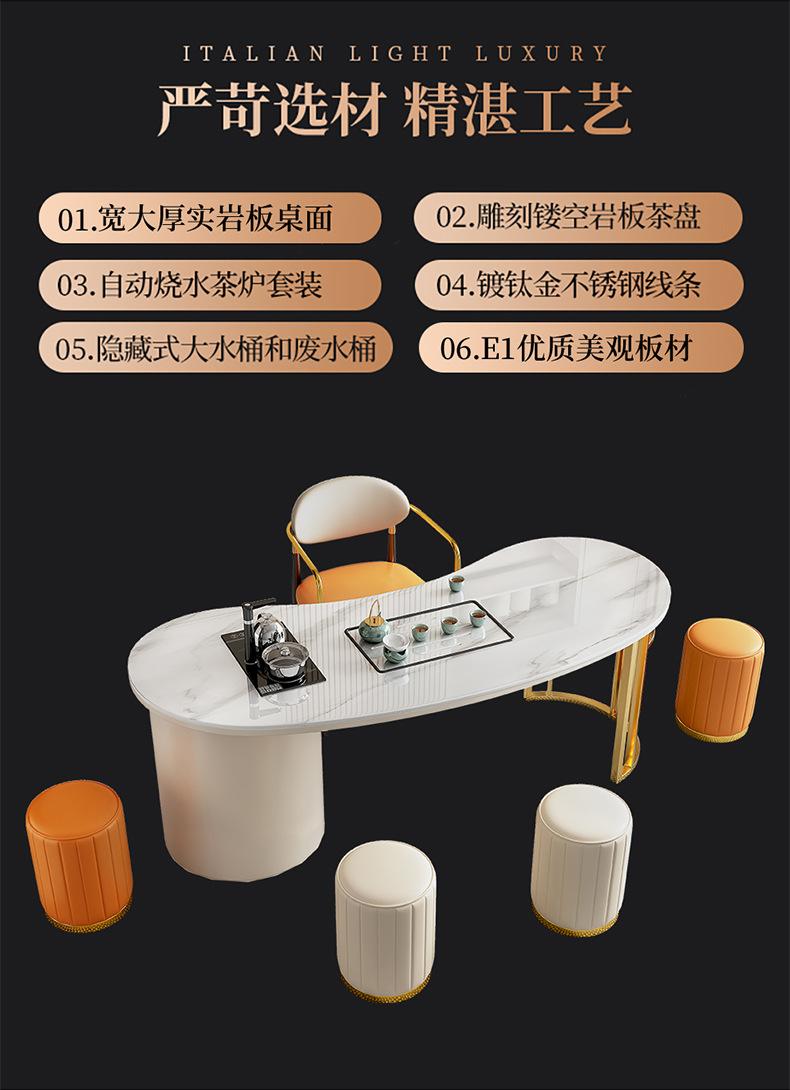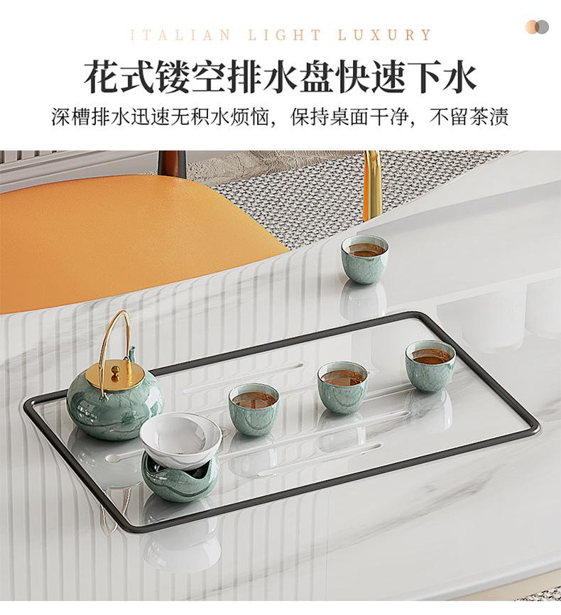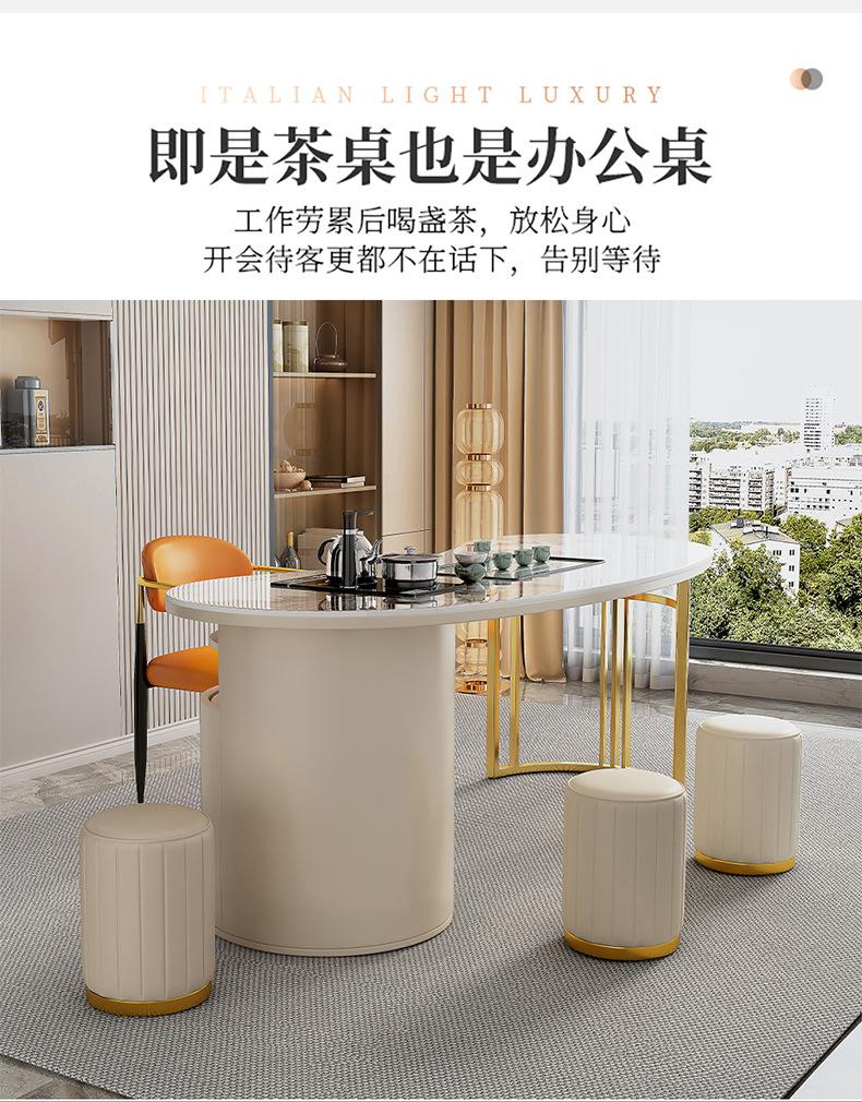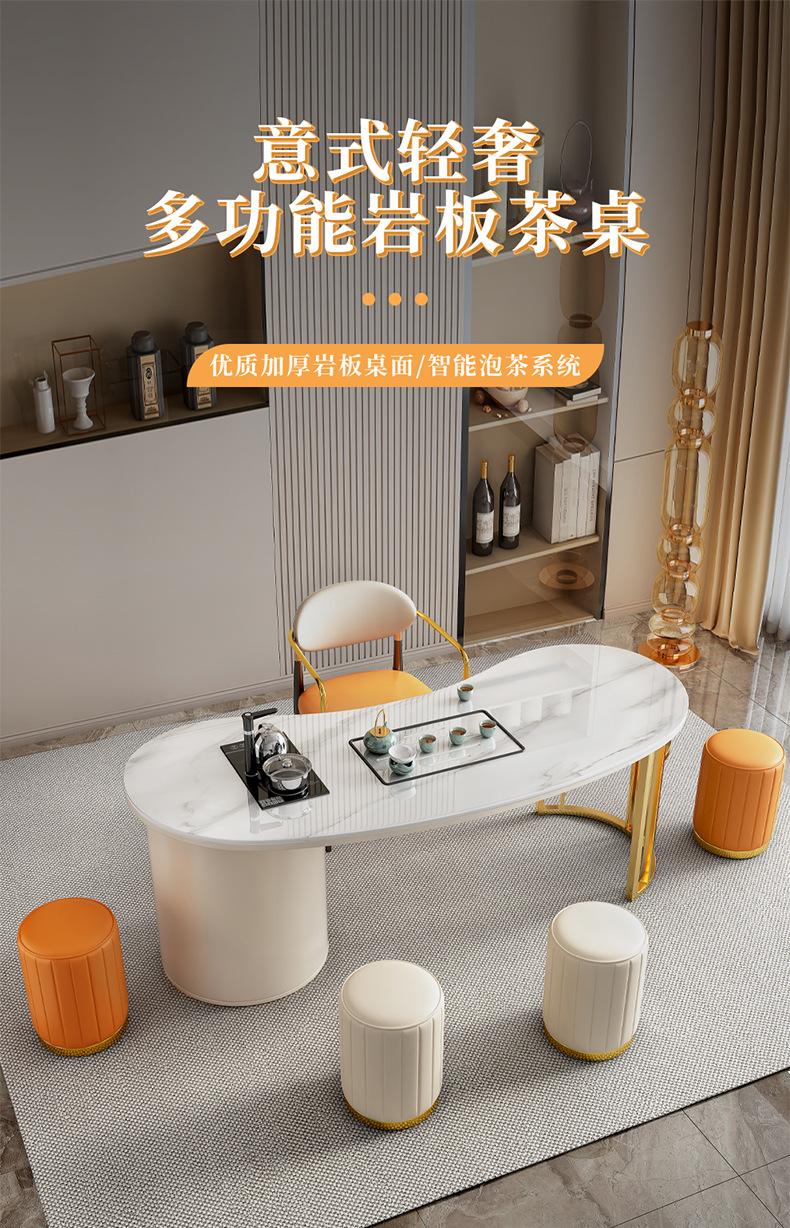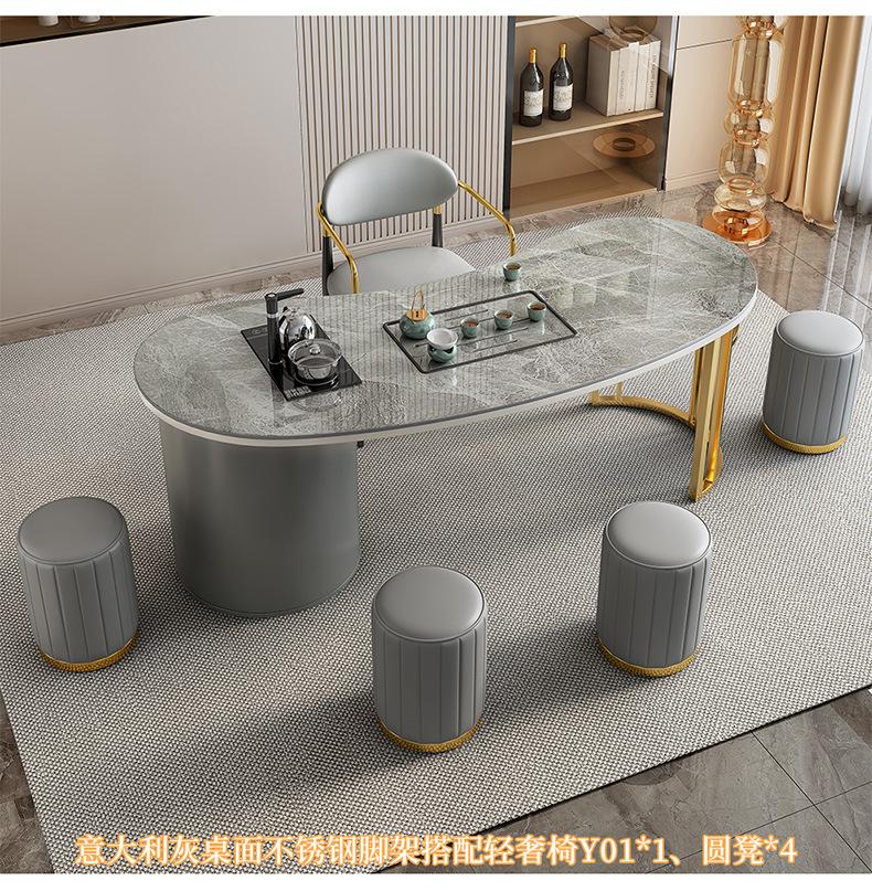 Mesa de té y silla de lujo ligera con tablero de roca, combinación sencilla y moderna, mesa de té para oficina, hogar, sala de estar, balcón, mesa de té pequeña.