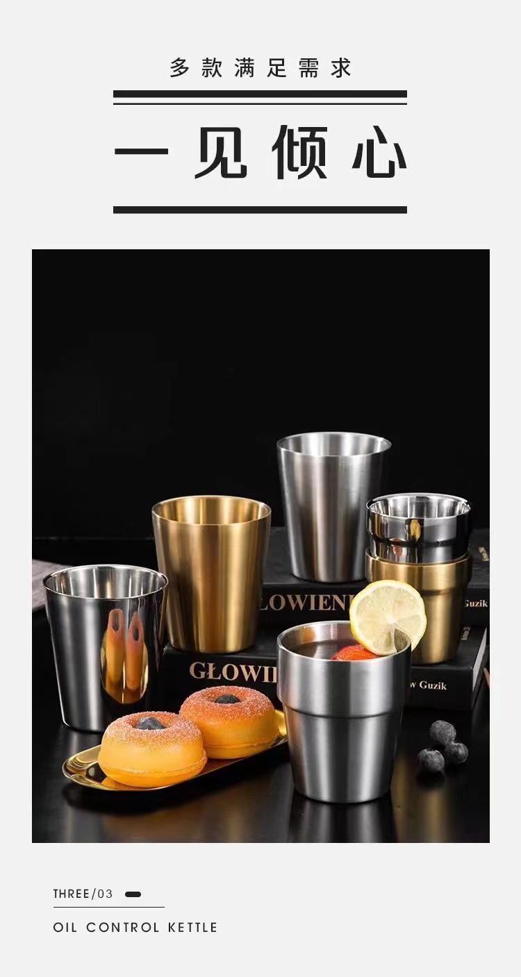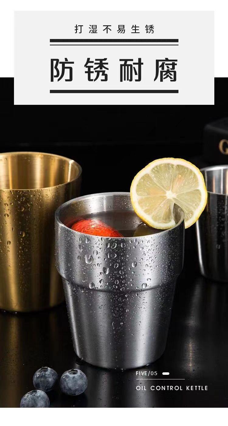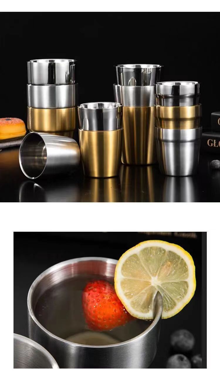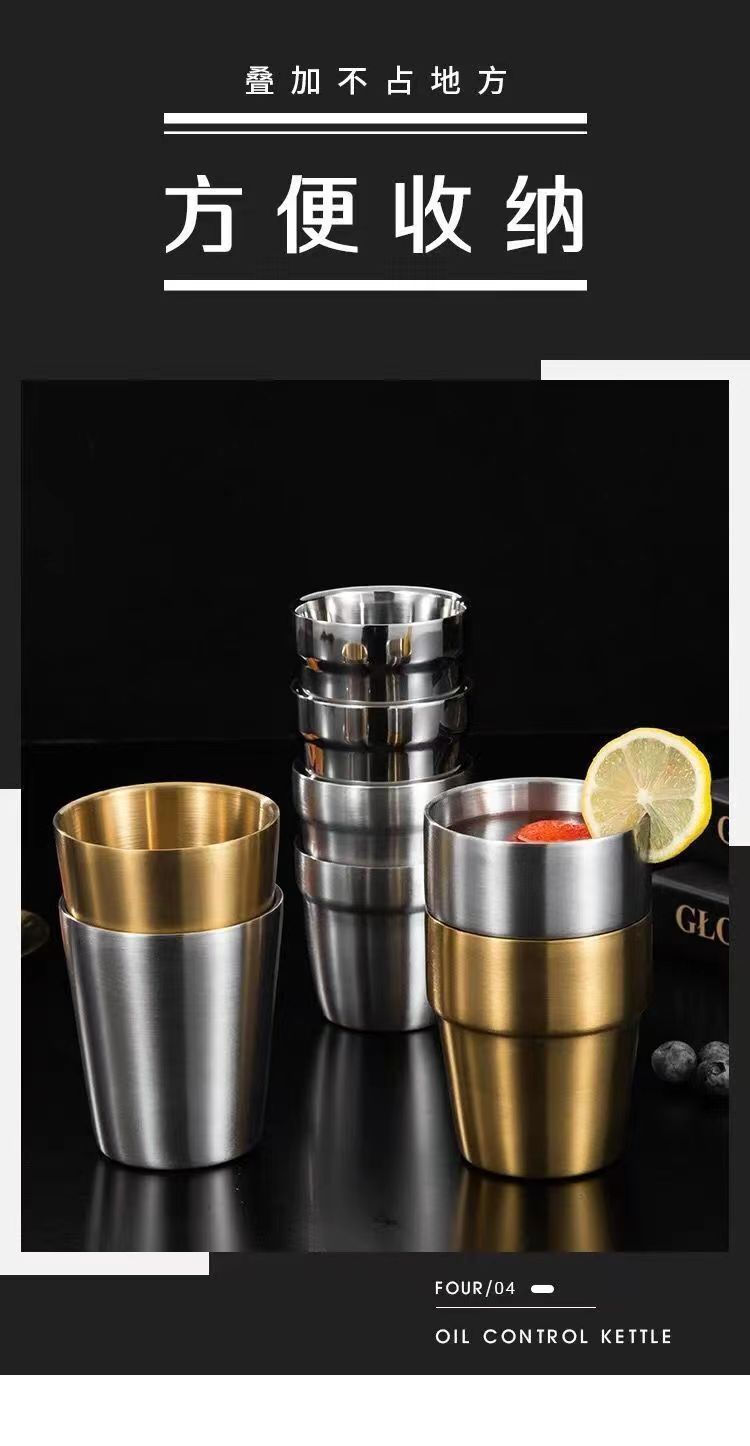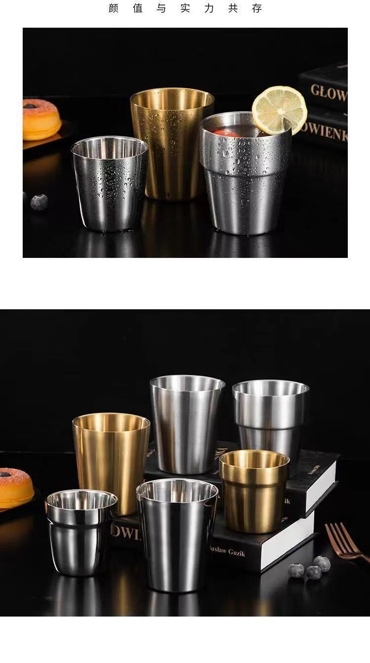 Taza de acero inoxidable 304 coreana, taza dorada para restaurante, taza de cerveza espesa, taza de té para niños con aislamiento de doble capa