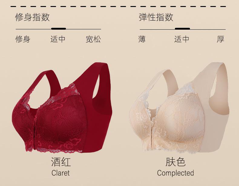 Sujetador de talla grande con hebilla de apertura frontal sin aro de acero, ropa interior sexy ajustable y fina fruncida para mujer, venta al por mayor