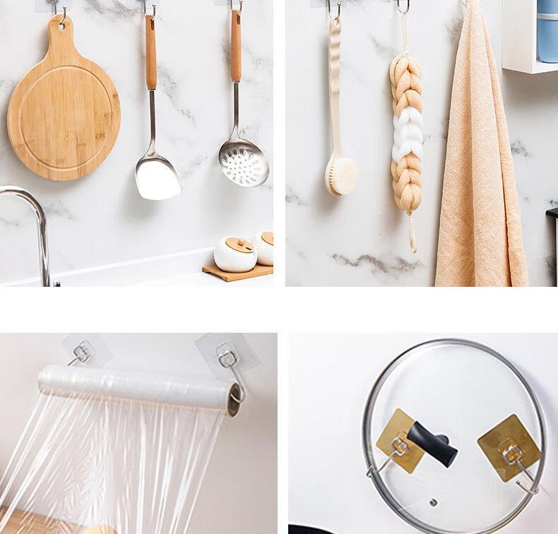 Gancho grande, fuerte adhesivo, sin perforaciones, para cocina, baño, transparente, adhesivo, resistente, sin costuras, para colgar en la pared, con ventosa