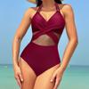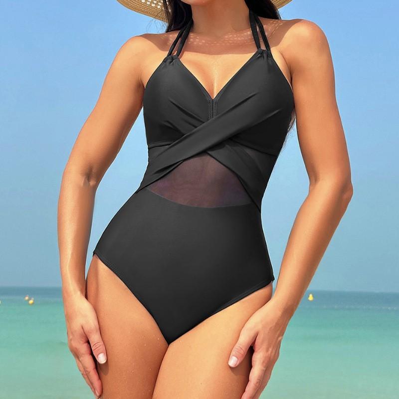 Traje de Baño Entero Nuevo Europeo y Americano de Amazon Transfronterizo para Mujer Color Puro Malla Traje de Baño Bikini Venta al por Mayor