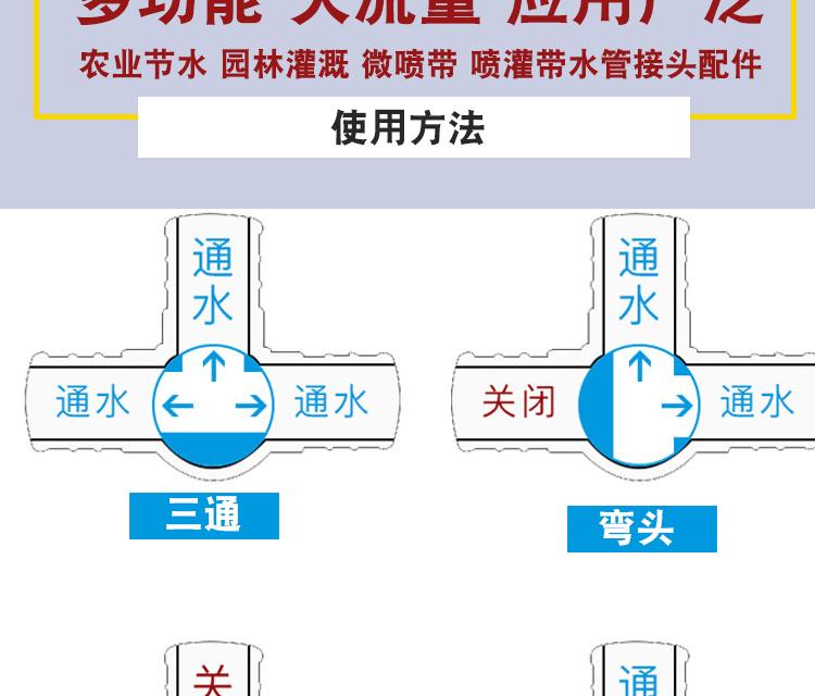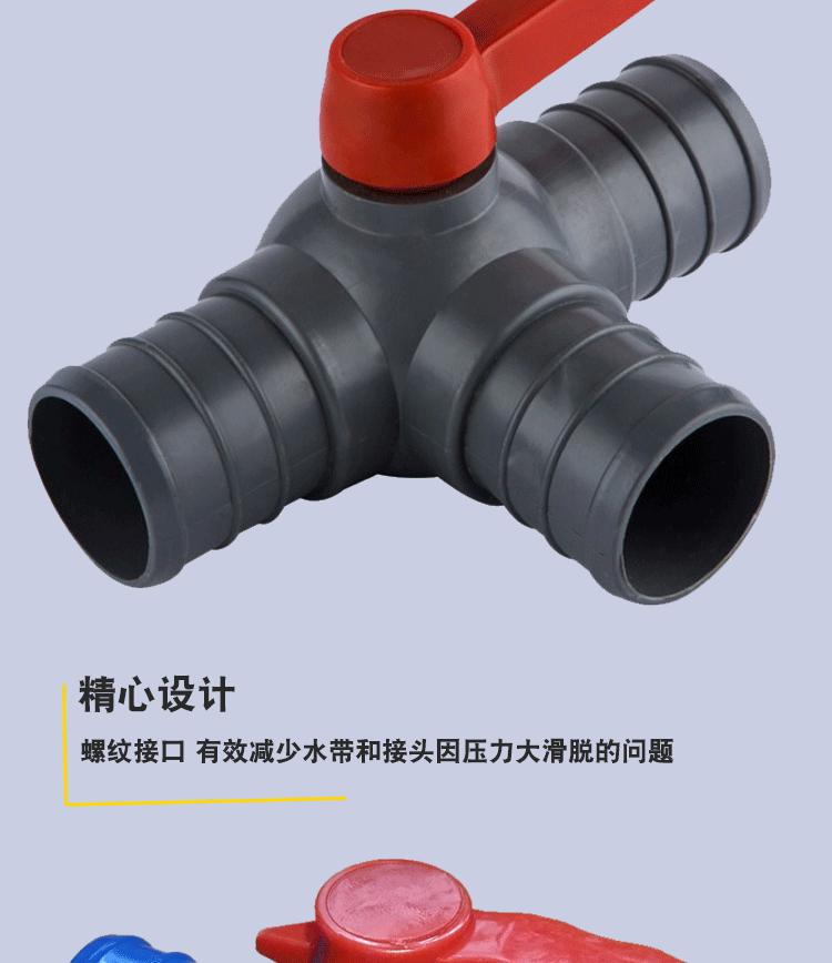 Válvula de Irrigación Agrícola Plástico Unión en T Válvula de Bola Interruptor Accesorios Cinta de Riego por Goteo Gran Caudal 2 Pulgadas Agrícola 3 Pulgadas