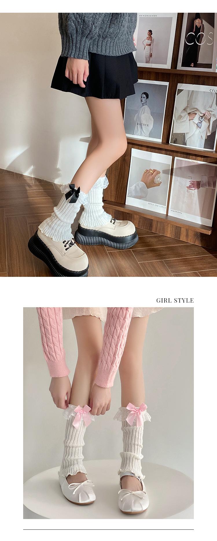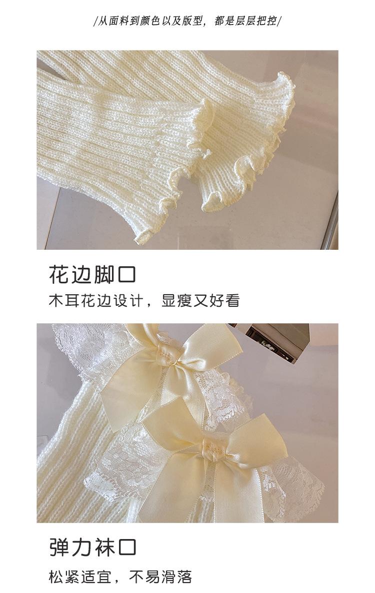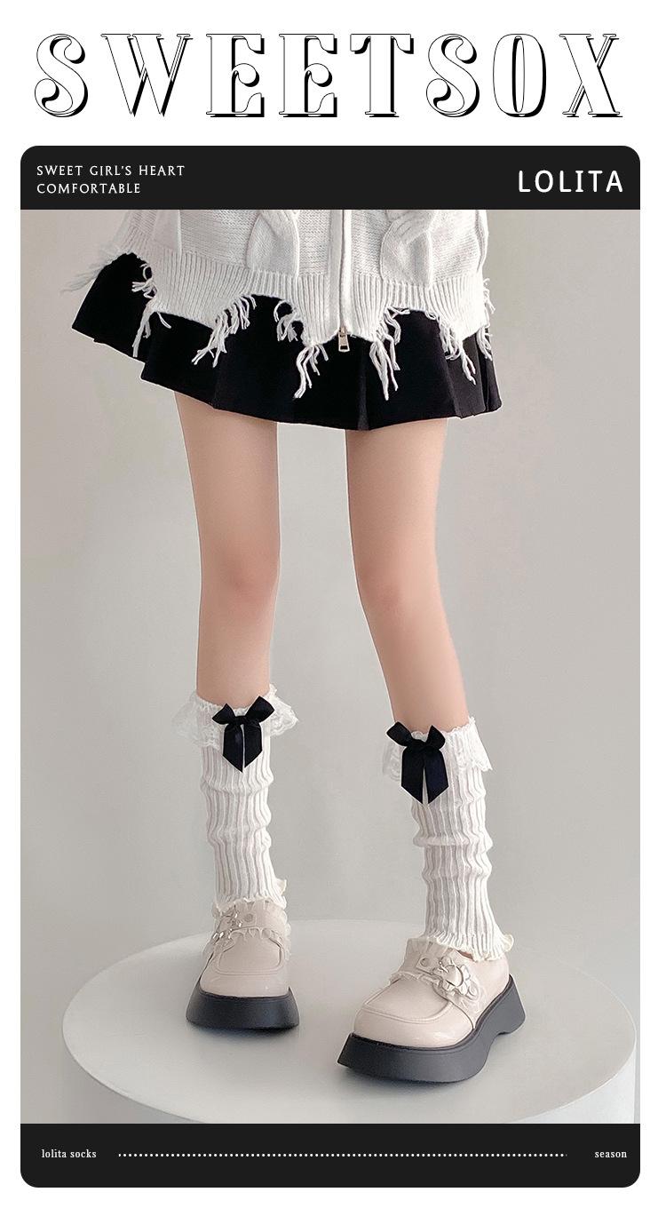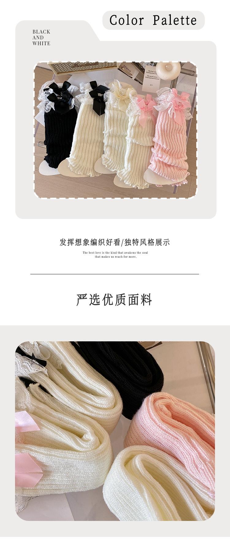 Calcetines para Mujer Encaje Lazo Pila Primavera y Otoño Tubo Largo Color Sólido Lolita Encaje Estilo Ballet Tubo Largo Lana Cubrepiernas