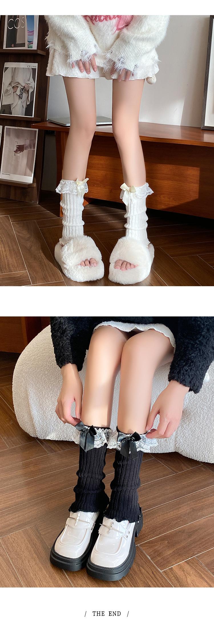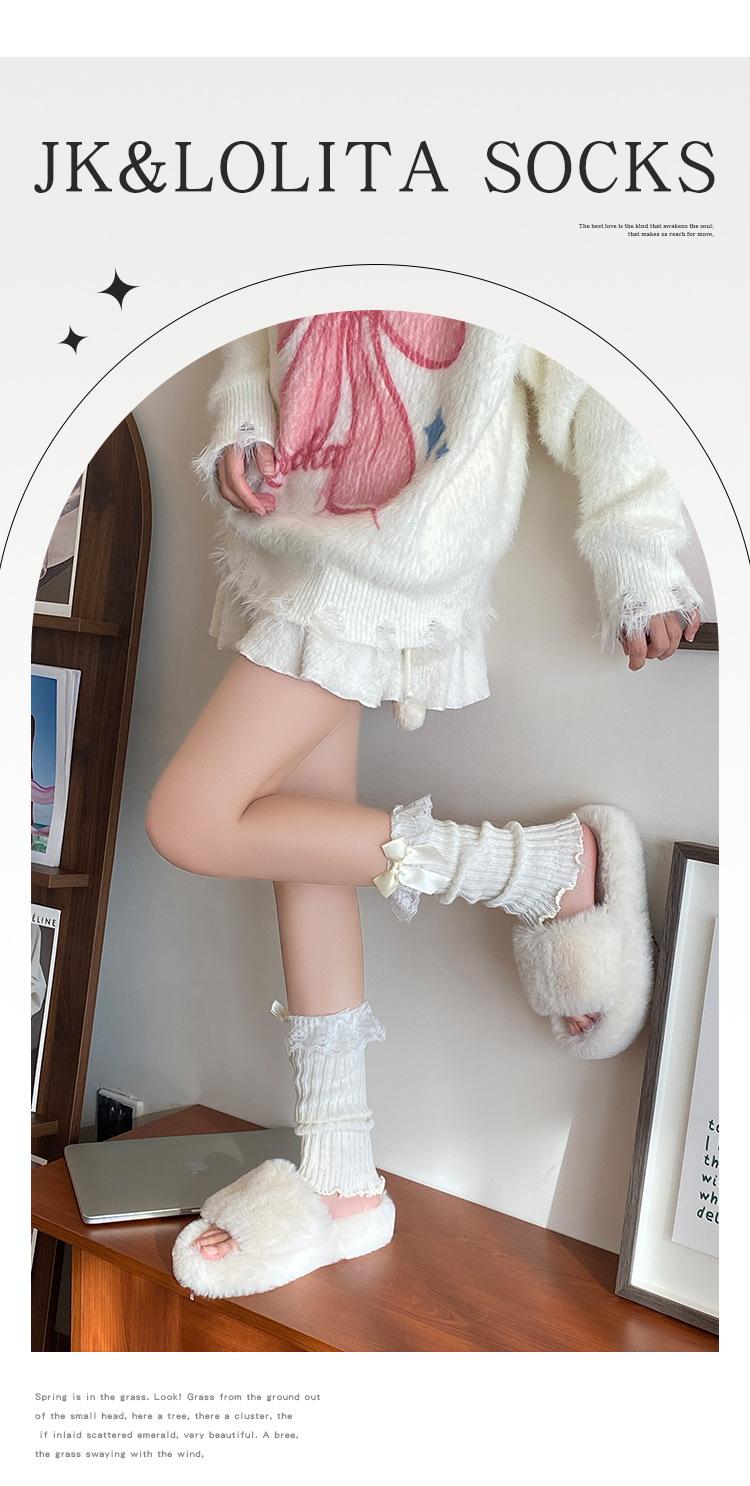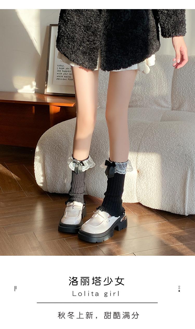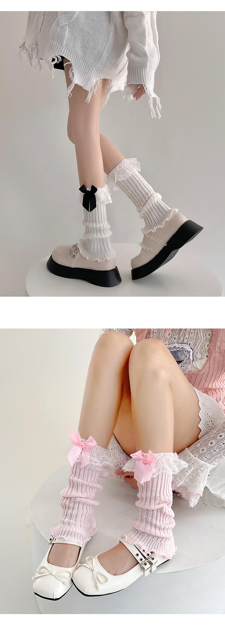 Calcetines para Mujer Encaje Lazo Pila Primavera y Otoño Tubo Largo Color Sólido Lolita Encaje Estilo Ballet Tubo Largo Lana Cubrepiernas