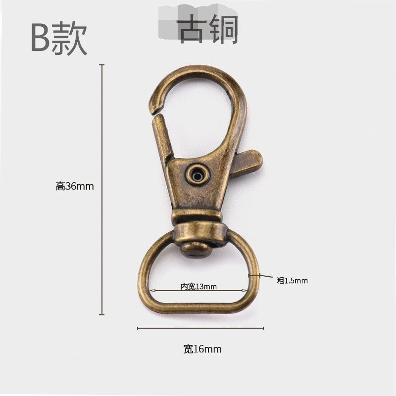 Fabricante en stock llavero de aleación de zinc hardware hebilla de perro hebilla giratoria varios estilos hardware hebilla de perro accesorios para teléfono móvil