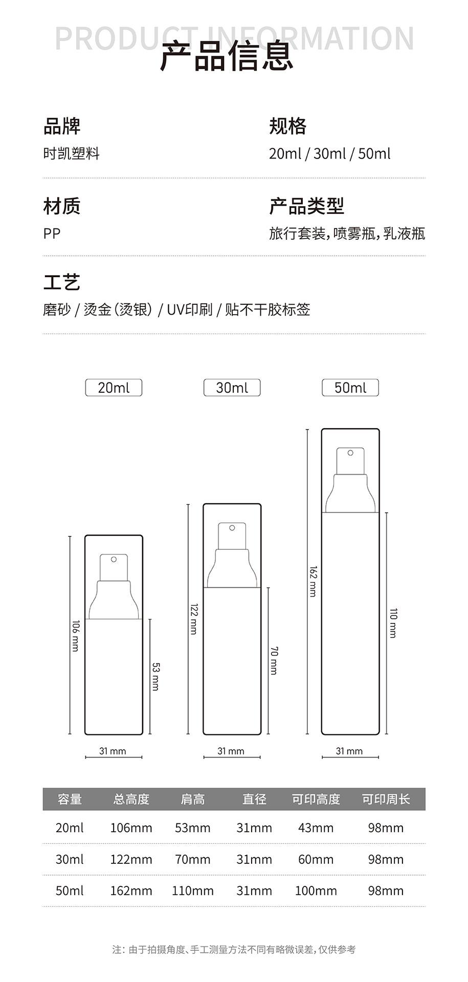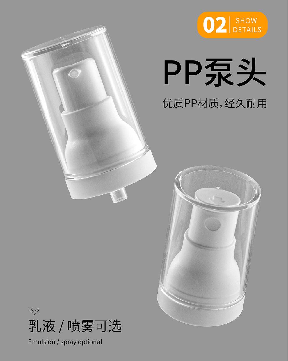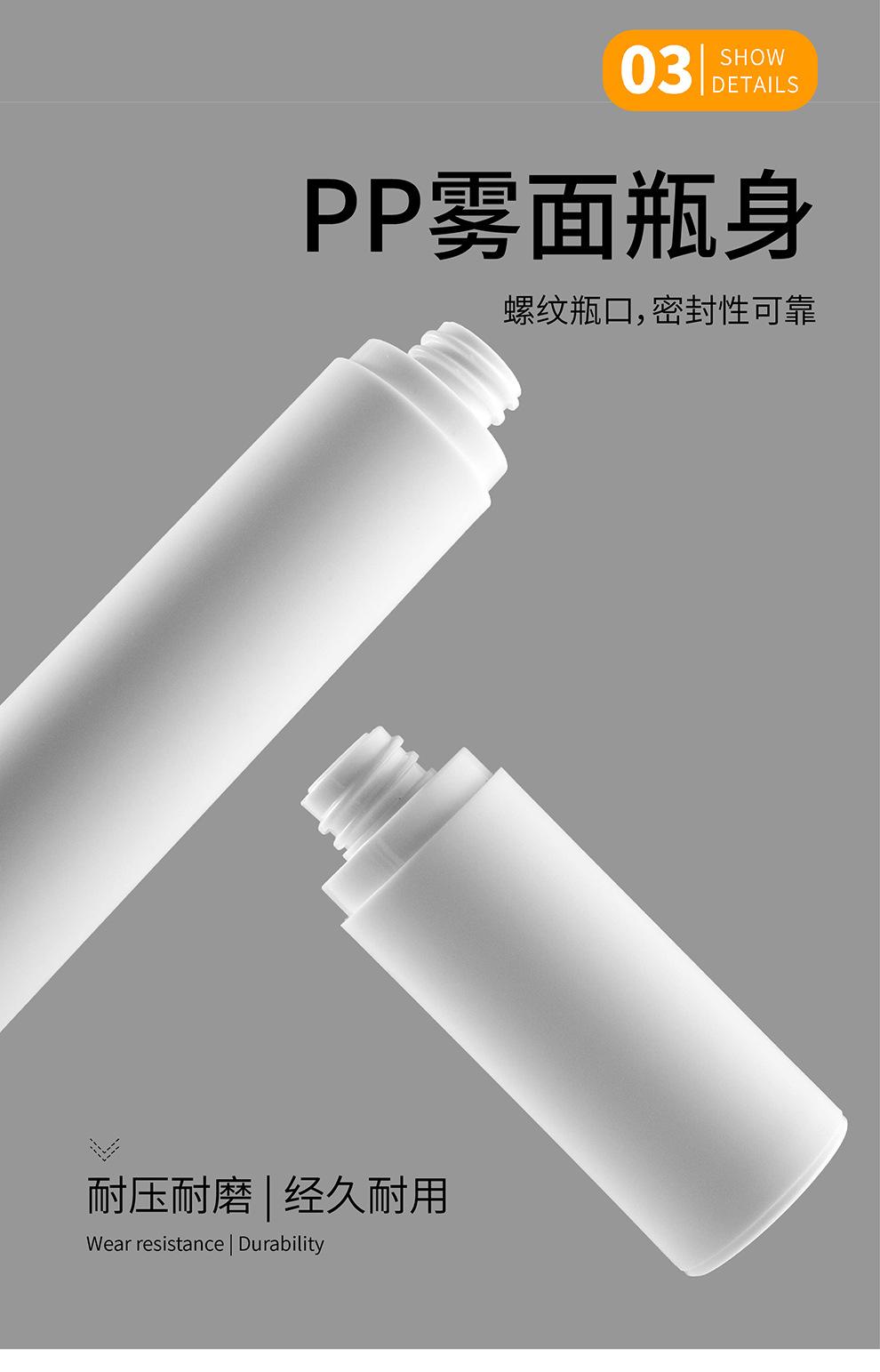 Botella de loción al vacío esmerilada Spot 15/30/50 ml, botella de loción prensada subembotellada de PP, botella cosmética de viaje