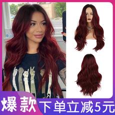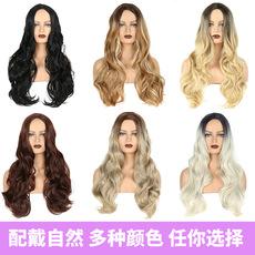 Pelucas de cabello largo y rizado transfronterizo para mujeres con colores degradados europeos y americanos, pelucas de cabello largo y rizado con raya al medio con múltiples colores disponibles, fabricantes al por mayor
