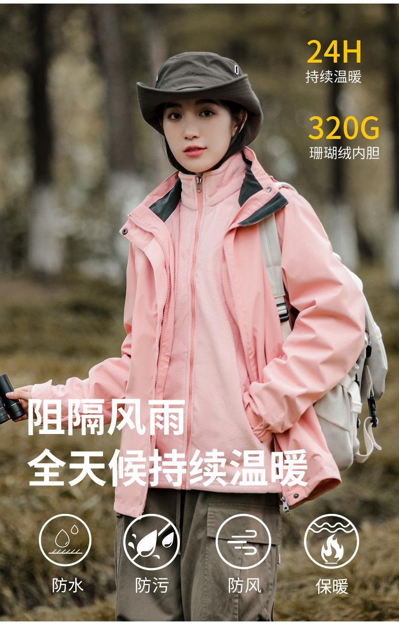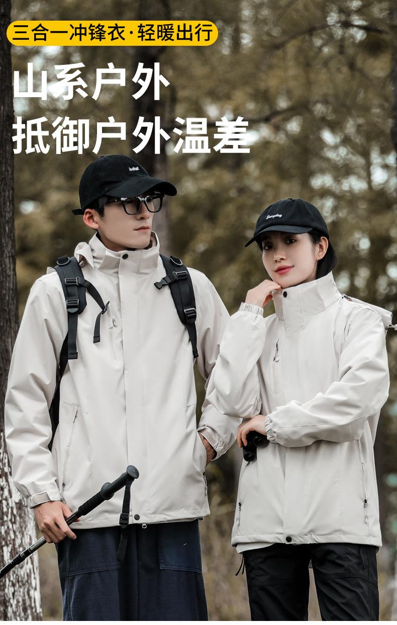 Deportes al Aire Libre Traje de Montaña para Hombre Moderno Desmontable de Dos Piezas Tres en Uno Otoño e Invierno Grueso a Prueba de Viento para Mujer
