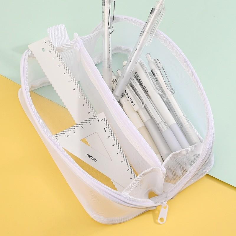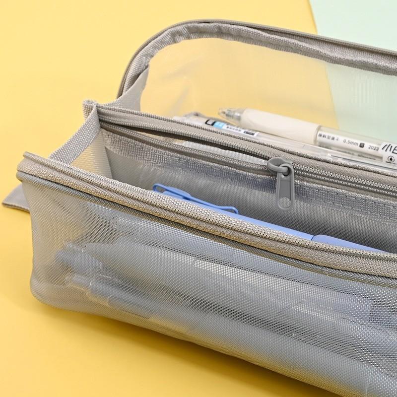 Bolsa de Malla Simple para Papelería Prueba de Estudiante Nuevo Gran Capacidad Transparente Estudiante de Primaria Estuche de Malla para Papelería Bolsa de Almacenamiento